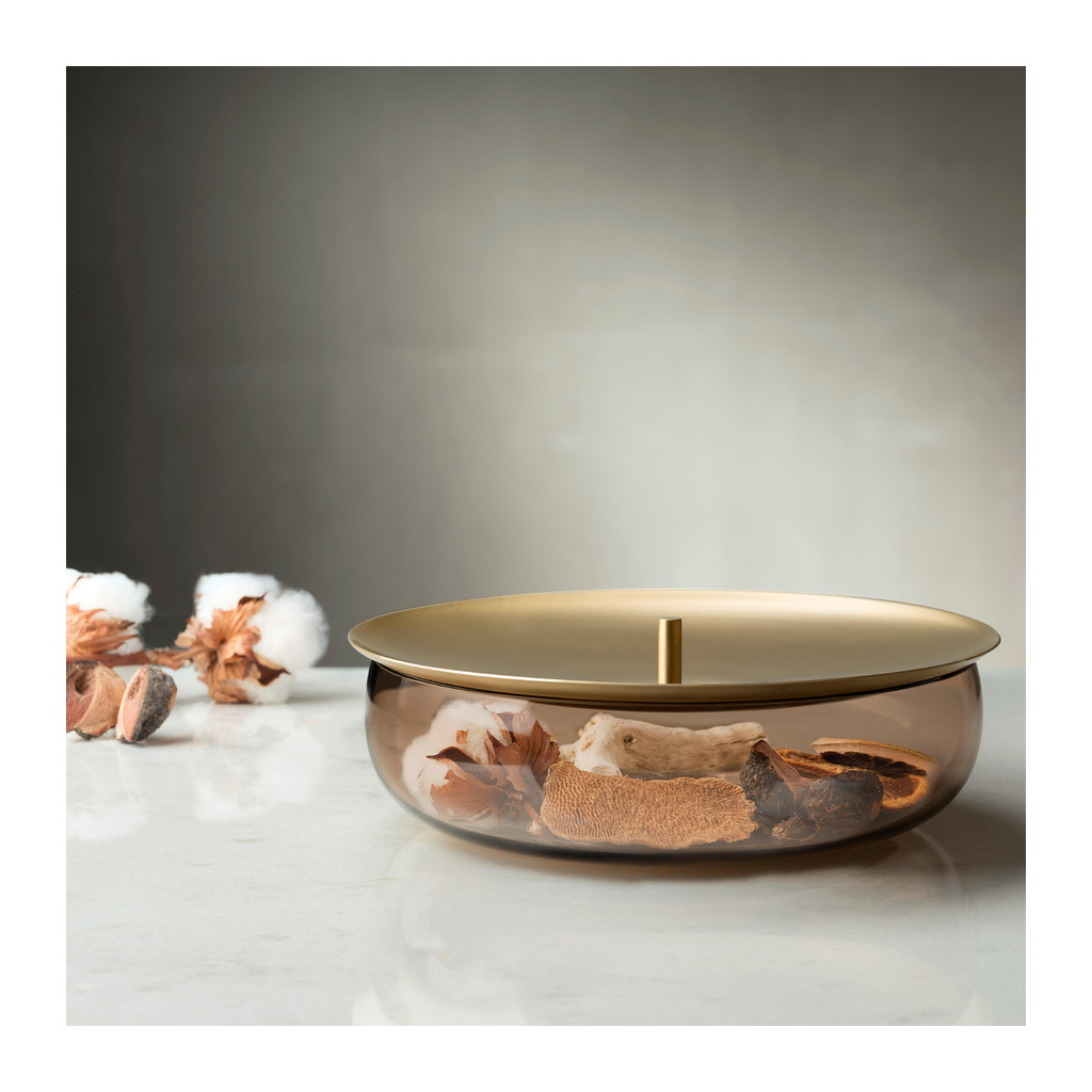 Beret Storage Box Medium Caramel with Brass Lid by Nude Glass