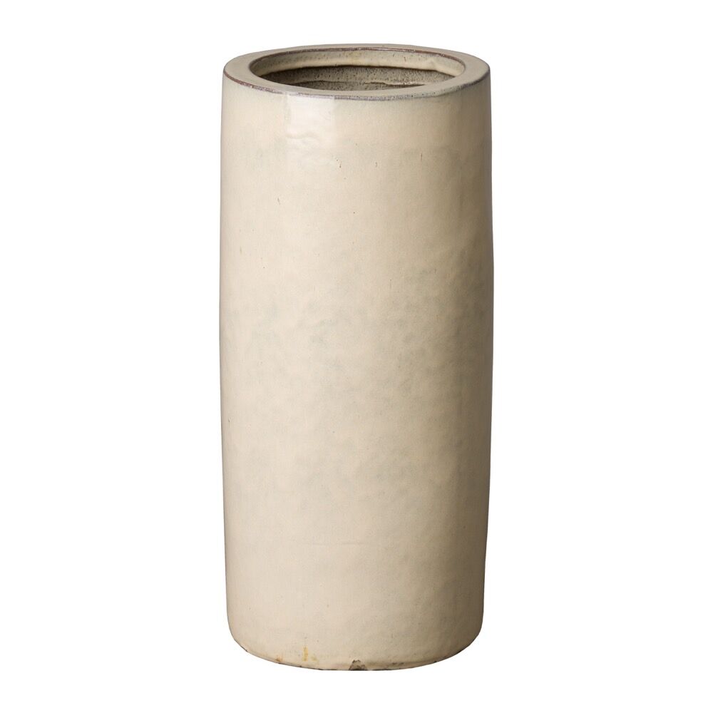 Ceramic umbrella stand with a Cream glaze.