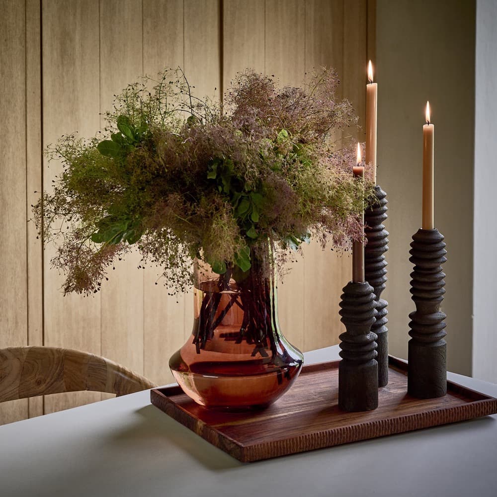 The Famiglia vases are like a close family, each with a unique character. With their different sizes, the trio forms a nice whole. The vases are mouth-blown and mass-coloured so that the colour is deep and evenly spread over the entire surface. We introduce six new models: three of them are transparent, while the others have been given a warm amber hue. They can also be used as a hurricane. Mouthblown: Yes; Watertight: Yes