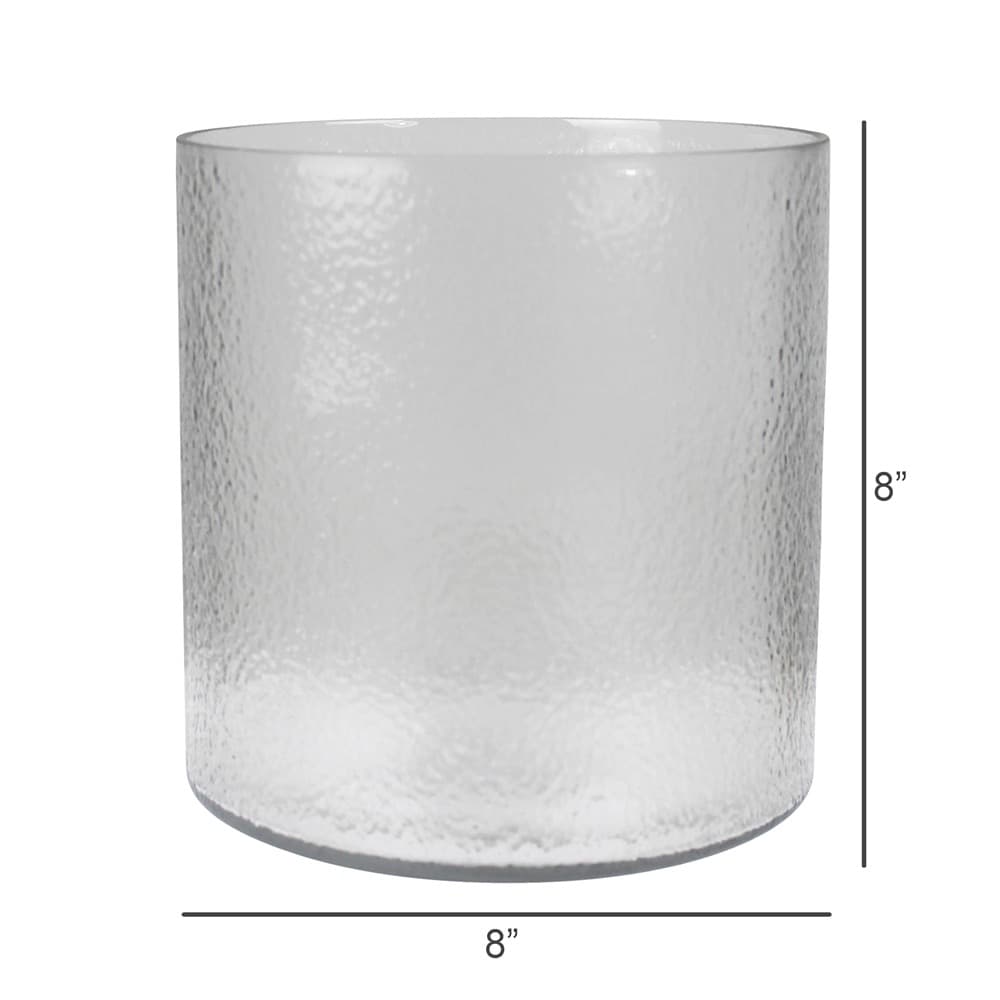 Thick glass with a hammered texture is the perfect proportion with visible simplicity for a statement arrangement or to house a large pillar candle as a contemporary hurricane.