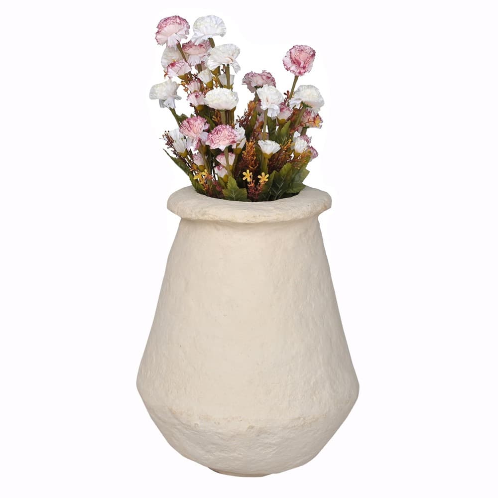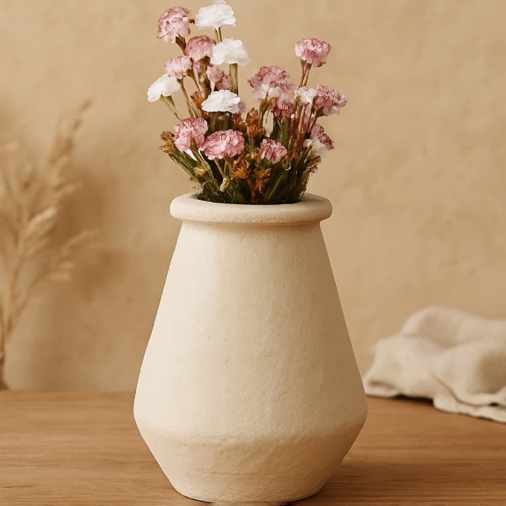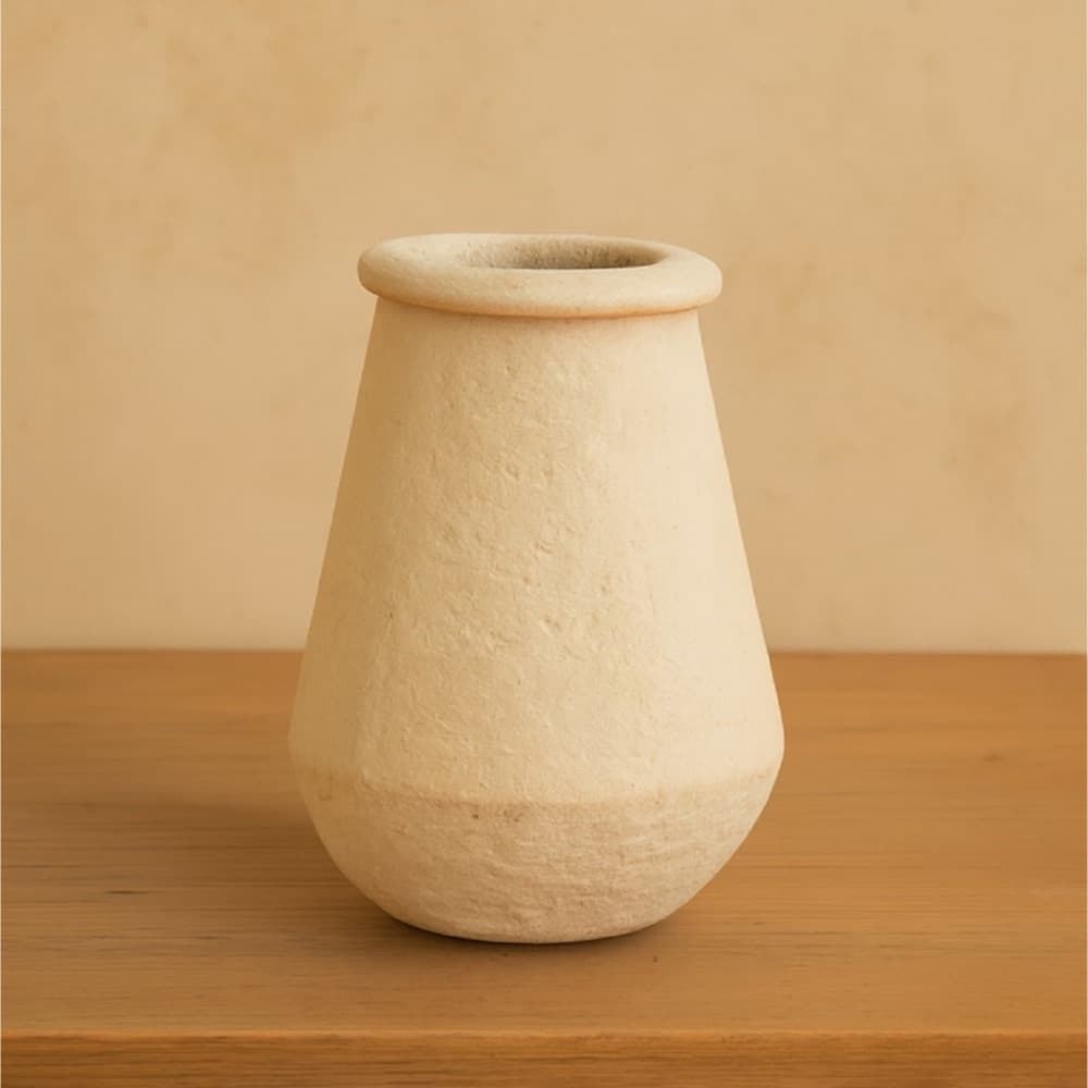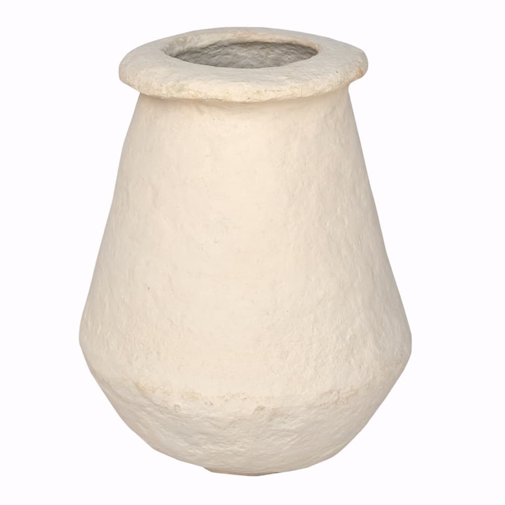 This paper mache vase, features a natural white finish that gives it a clean and elegant look. Handcrafted with care, its substantial size makes it a striking centerpiece for any room, suitable for holding large floral arrangements or as a decorative standalone piece. The vase’s unique texture and artisanal quality add a touch of rustic charm to both modern and traditional interiors.
