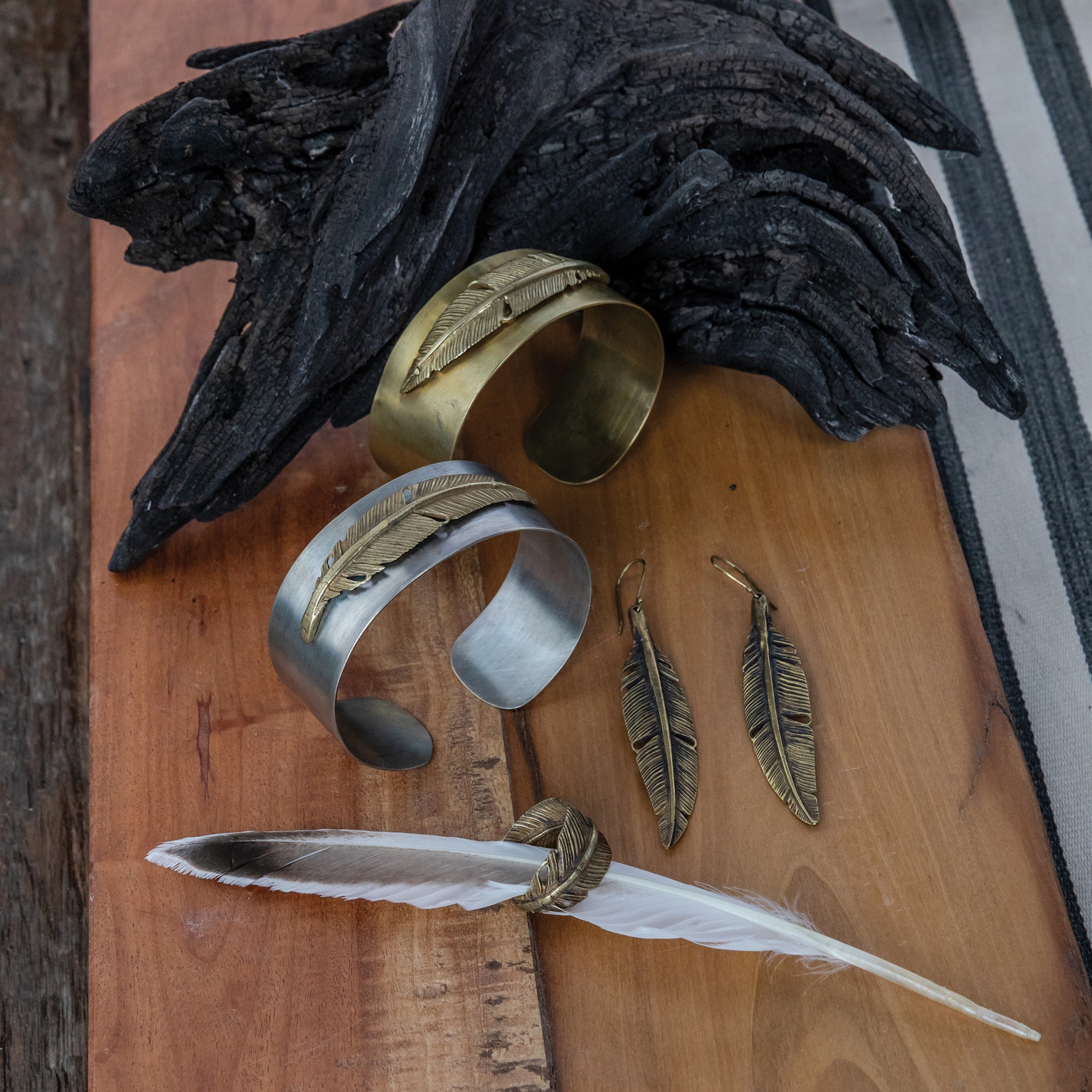 Our cast brass feather takes flight in a timeless statement-piece collection. Silver-plated.