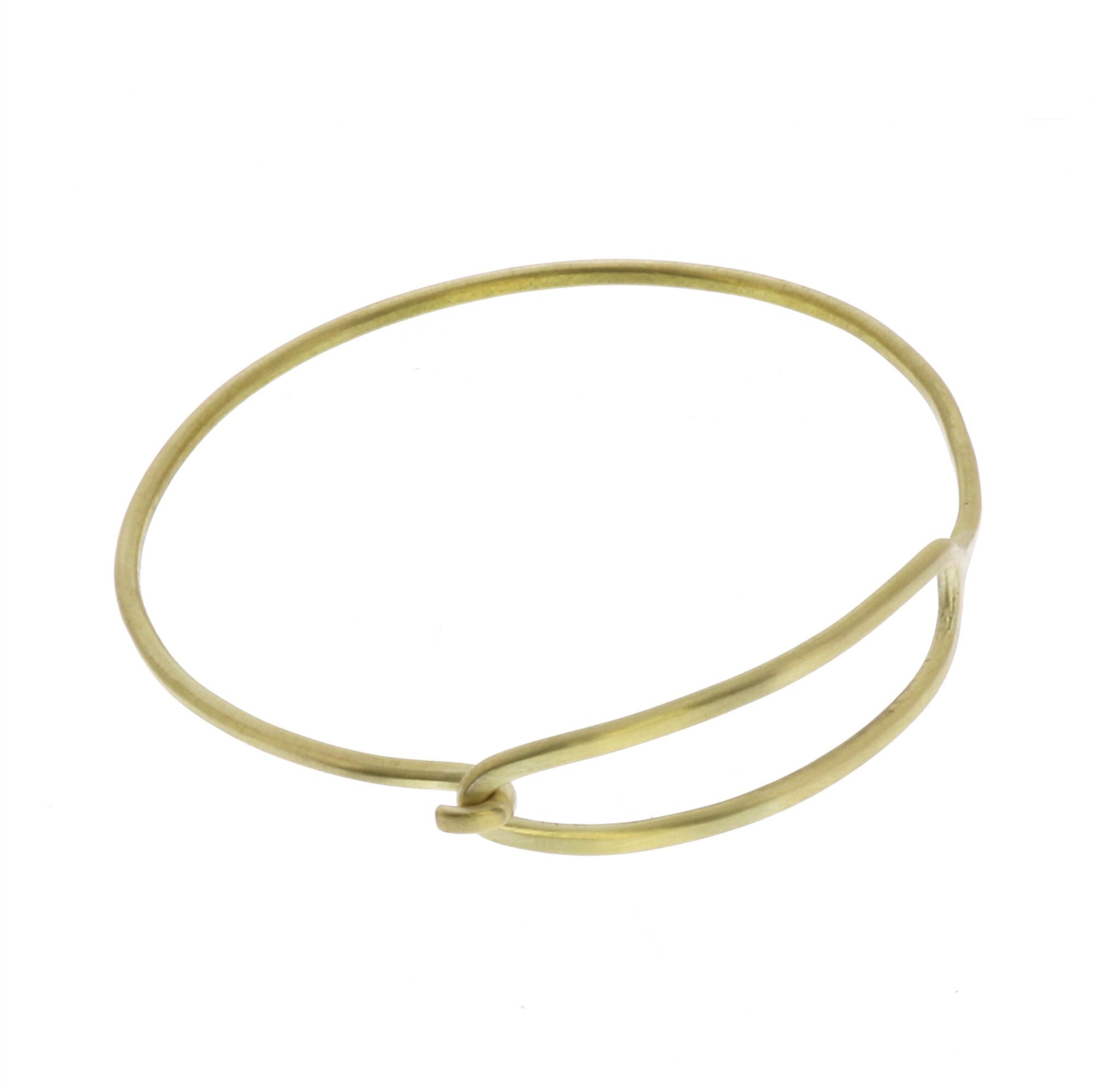 These thin metal bangles with hand-hammered texture and rhythmic circular forms feature a hook closure for the ease of wearing.