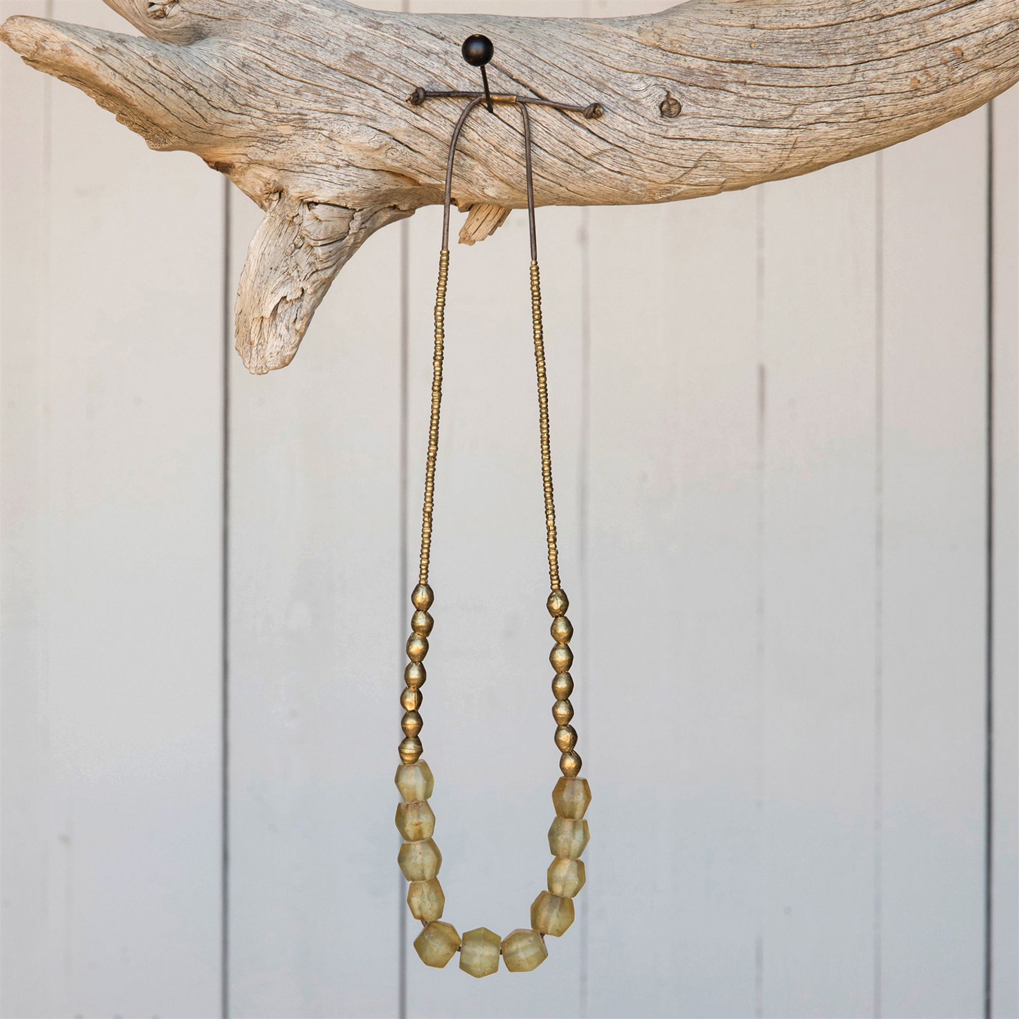 Amber Seaglass and Brass Beaded Necklace by Ora Ten