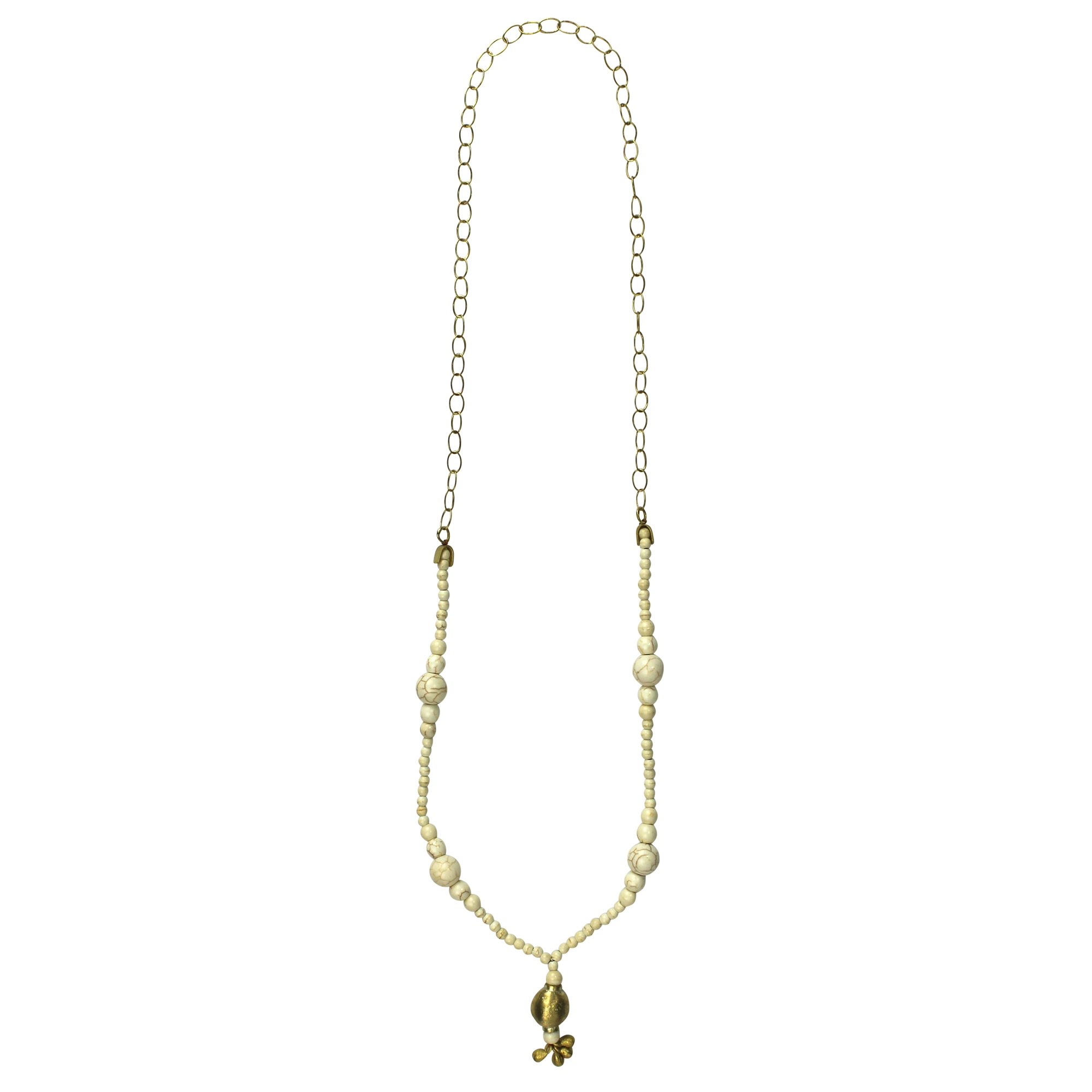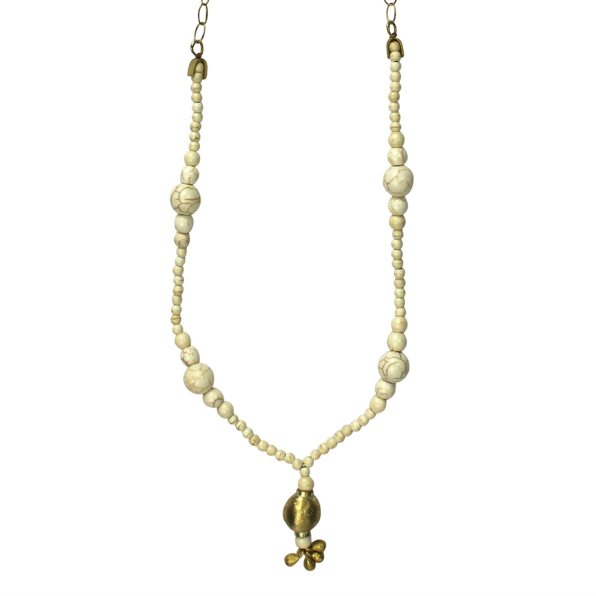 Pendant Necklace with Brass Tassel and Howlite Beads by Ora Ten