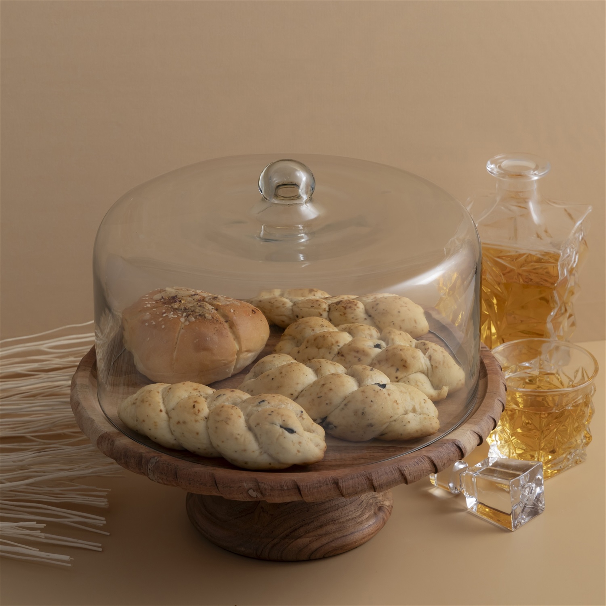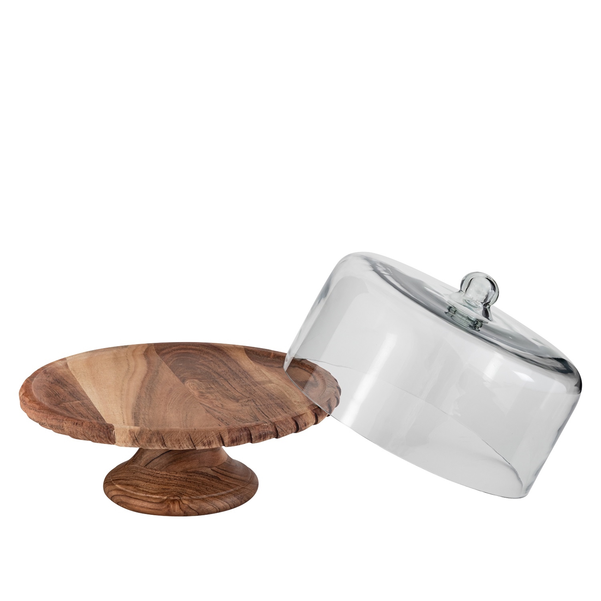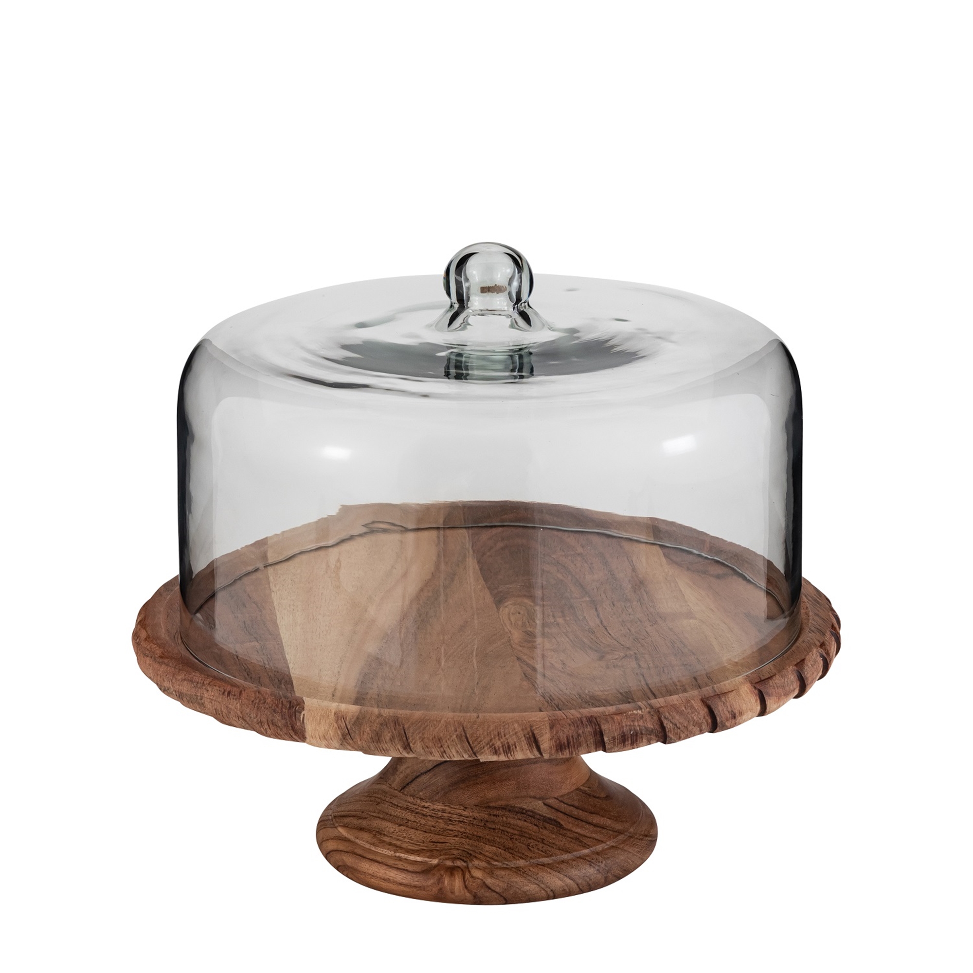 Acacia Wood Footed Cake Plate with Glass Dome by BIDKhome