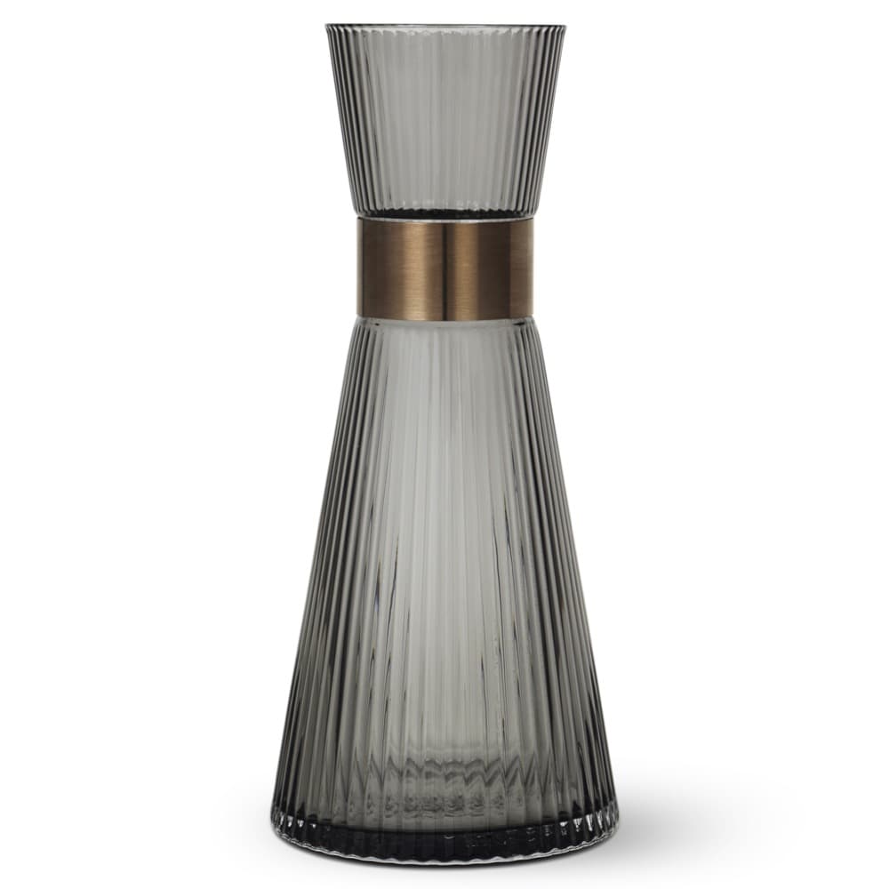 Serve refreshing, ice-cold water in the elegant Grand Cru Nouveau water carafe. It is created in smoke colored glass and is both light and elegant. Repeating grooves adorn the surface of the glass and create a refined optical play when the light is refracted. An elegant example of functional glass design for modern living. It holds 33.8 oz and is dishwasher safe up to 130 Degrees Fahrenheit