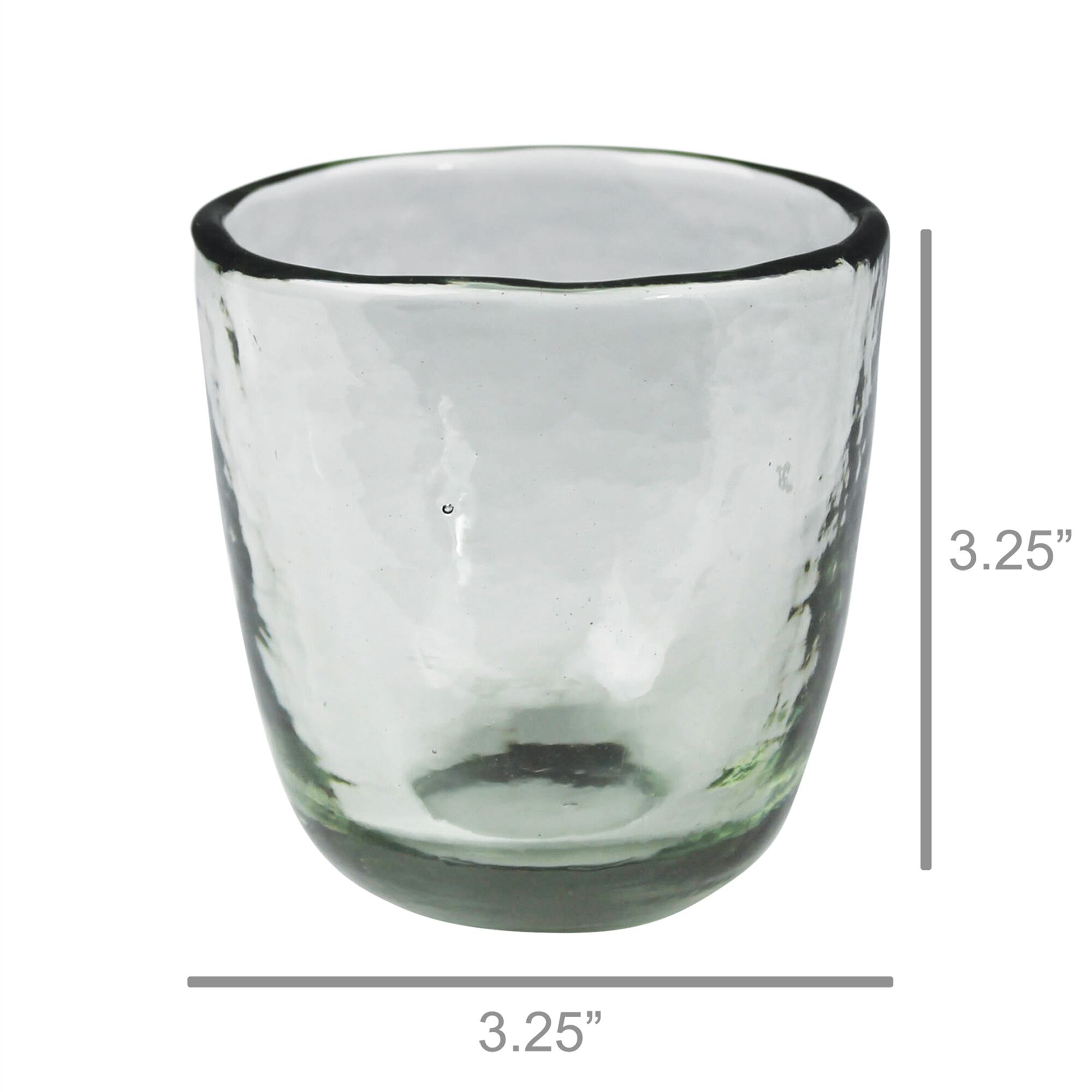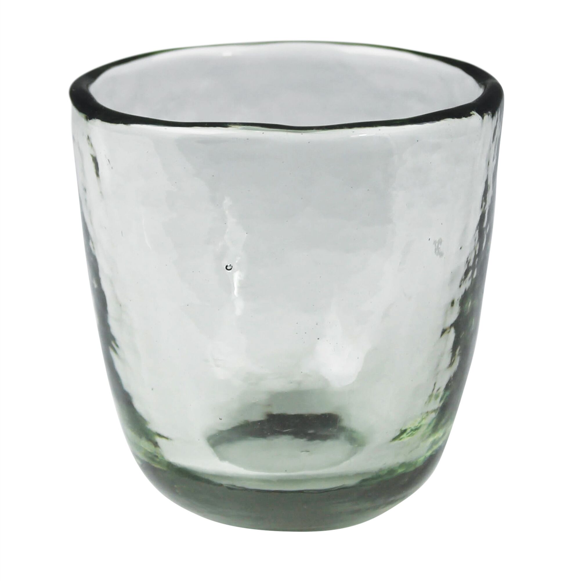 This casual glassware collection is hand made of recycled glass lending a unique characteristic to each piece. Thick glass with a subtle hammered texture, this fuss-free drinkware feels as good in the hand as it looks on a shelf.