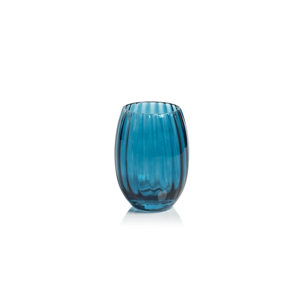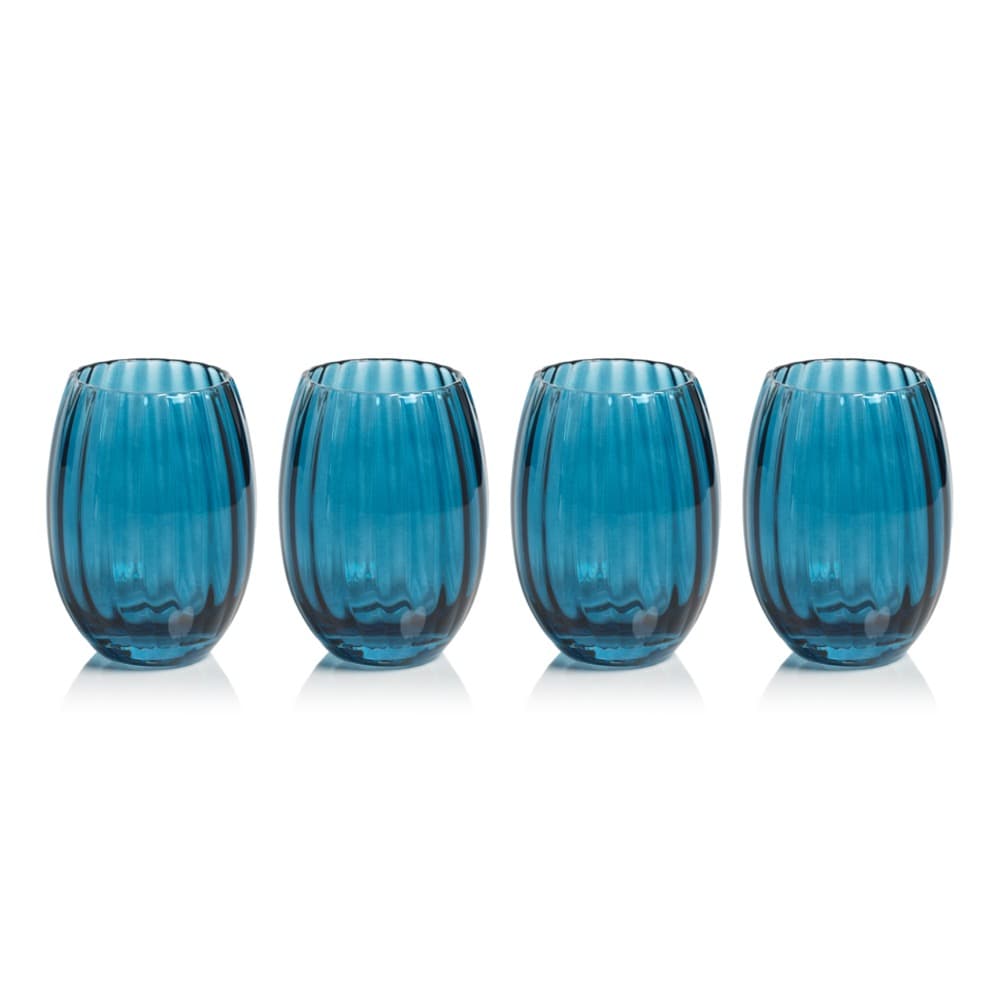 Blue Azure Malden Optic Stemless All-Purpose Glasses, Set of 4 by Zodax