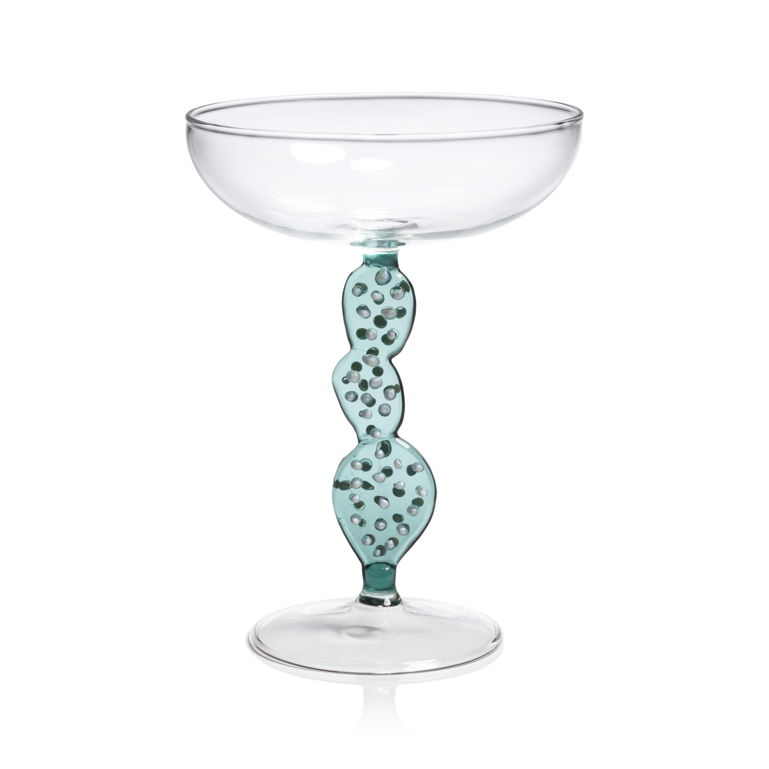 Elevate your cocktail experience with the Climbing Cacti Tequila Cocktail Glasses. Featuring a classic clear-finish coupe bowl, these glasses stand out with a cactus-inspired stem in vibrant hues, accented by delicate white dot detailing. The clear, flat round base ensures stability, making them perfect for serving tequila-based cocktails, margaritas, or your favorite mixed drinks. A stylish fusion of modern elegance and Southwestern charm, these glasses bring a unique and playful touch to any barware collection.