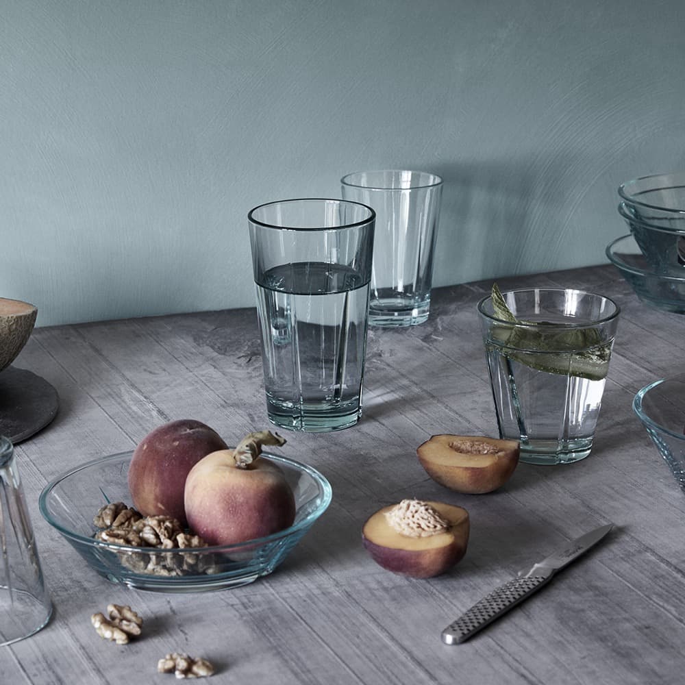 A renewal of the well-known classics, Grand Cru Recycled is created in 100% recycled glass of the best quality, which can be put on the table with a clear conscience. The glass has a faint blue-green tone that characterizes recycled glass, the color may vary slightly depending on the glass being recycled and testifies to the history of the glass. The series includes a new glass that contains 8.8 oz, in addition to the well-known Cafeglas, which can also be used for hot drinks and the small bowl which is perfect for breakfast and small servings. The functionality is as we know it. The glasses are both stackable and dishwasher safe – perfect for everyday use. Grand Cru Recycled is one of many new initiatives launched with focus on circularity and reducing the environmental impact, the idea is to make the responsible choice easy within the Rosendahl range.