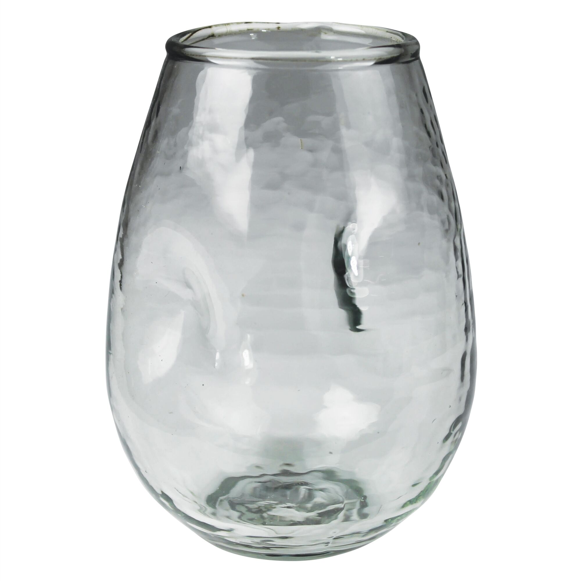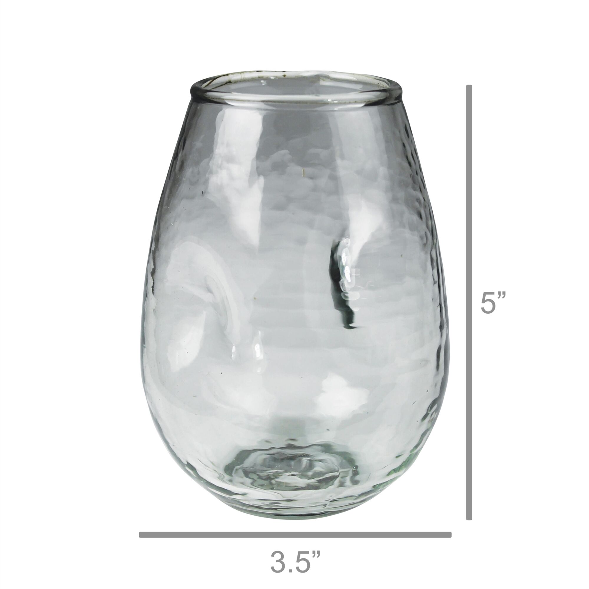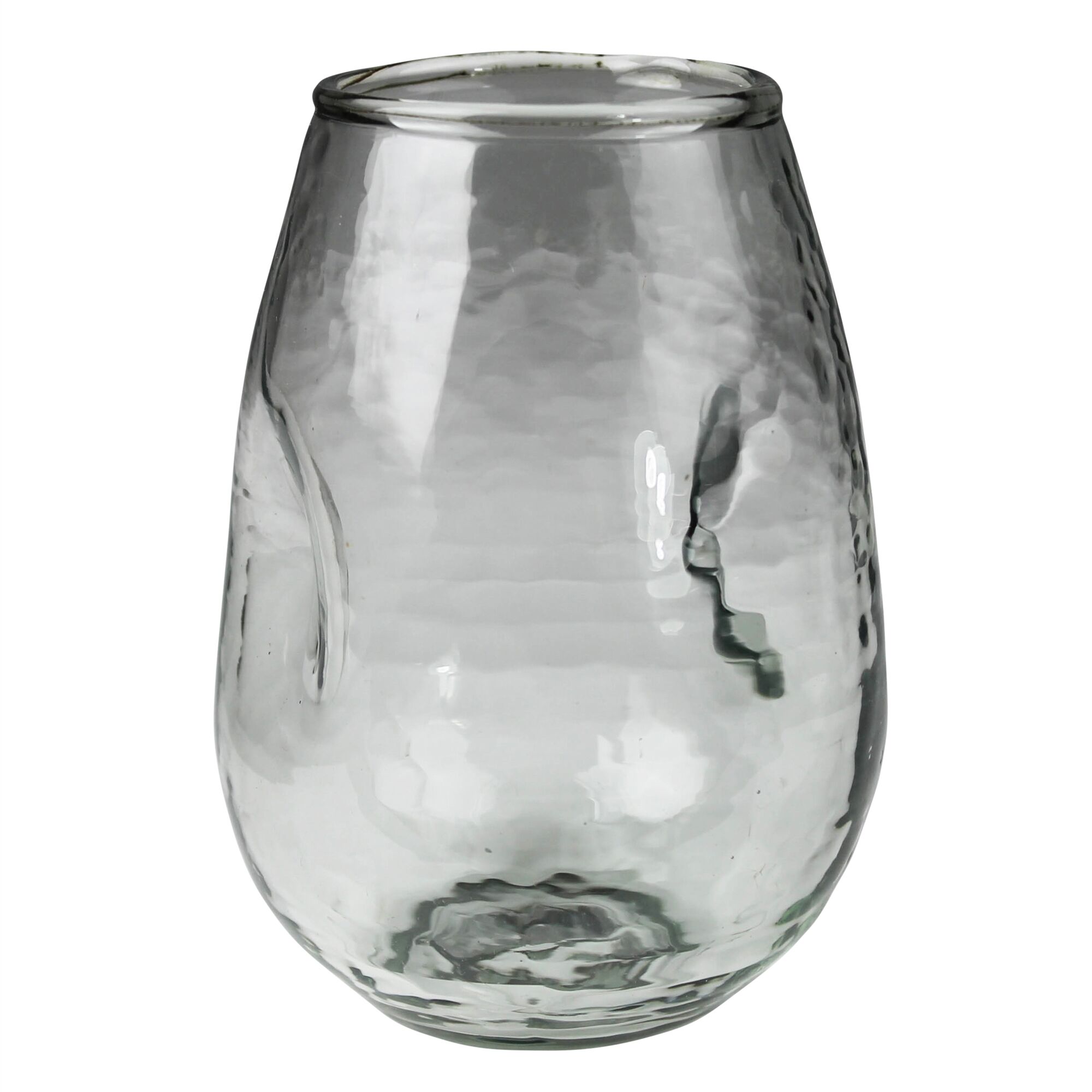 This casual glassware collection is hand made of recycled glass lending a unique characteristic to each piece. Thick glass with a subtle hammered texture, this fuss-free drinkware feels as good in the hand as it looks on a shelf.