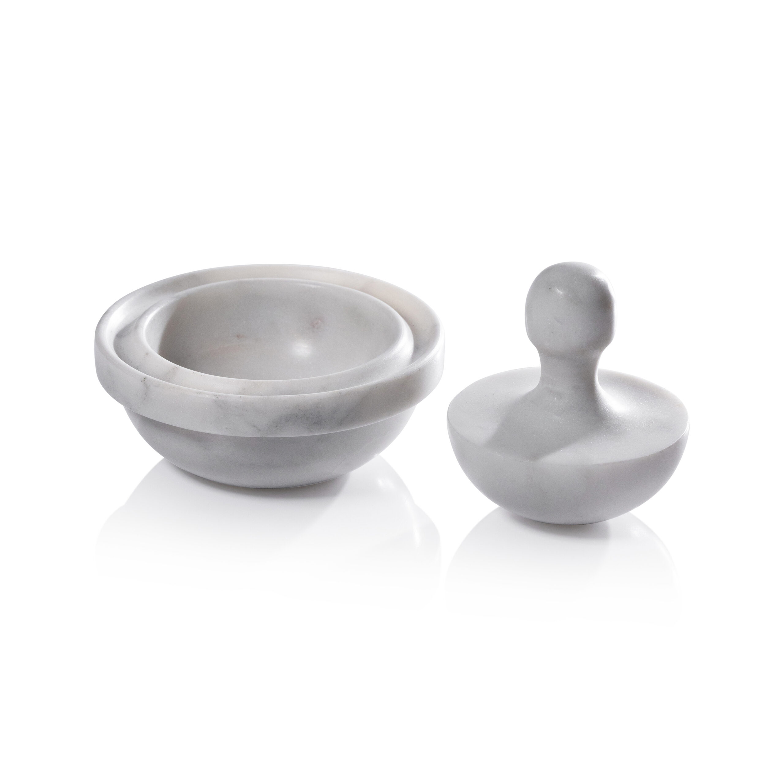 The Marble Spice Grinder is a refined take on a kitchen essential, combining functionality with sculptural elegance. Crafted from high-quality marble in a satin finish, this piece departs from the traditional mortar and pestle with its unique spinning top-inspired pestle. The wide design allows for effortless grinding while also serving as a lid for the mortar, creating a seamless, one-unit aesthetic. Perfect for grinding fresh spices, herbs, or seasonings, this versatile tool adds both practicality and beauty to any countertop.