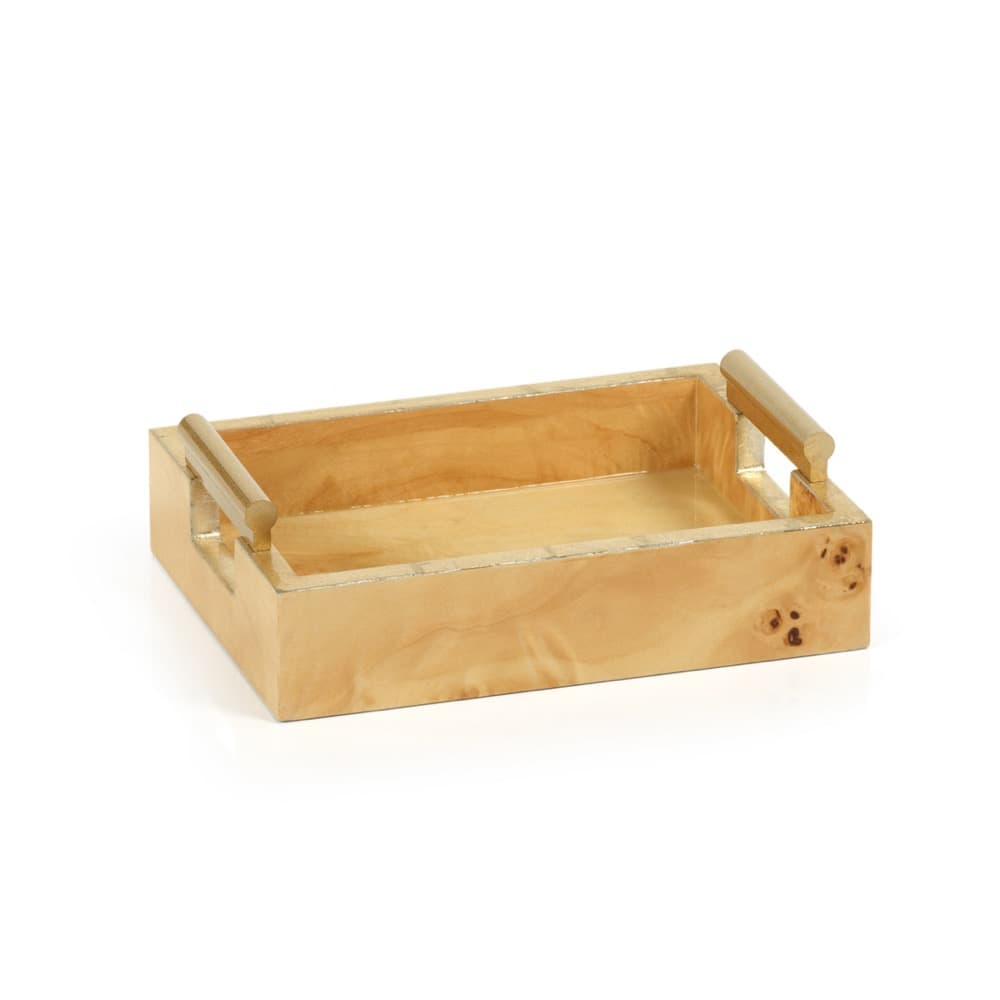 Leiden Burl Wood Rectangular All Purpose / Napkin Tray with Gold Handles by Zodax