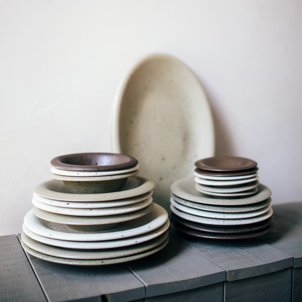 Made in Portugal, this magnificent Bosque three-colour collection consists of stoneware bowls, plates, serving dishes and tumblers. Specially designed for the hospitality industry, the pieces in this collection are fired only once at 1170 degreesc, in a process that is as environmentally friendly as possible. Solid and ultra-resistant, the Bosque collection has an elegant, minimalist design and features a speckled glaze that enhances its background colour. Base material: stoneware; Dishwasher safe: Yes; Microwave safe: yes; Measurements: DIA 22 x H 3 cm; Oven max temperature: 180 degreesC; Material finish: glazed; Hand painted: Yes.