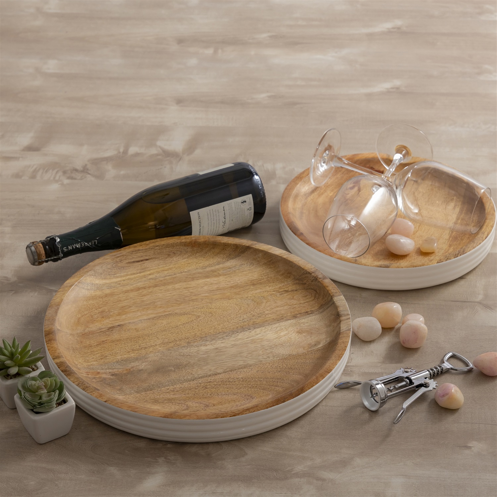Mango Wood Round Platters Set of 2 by BIDKhome