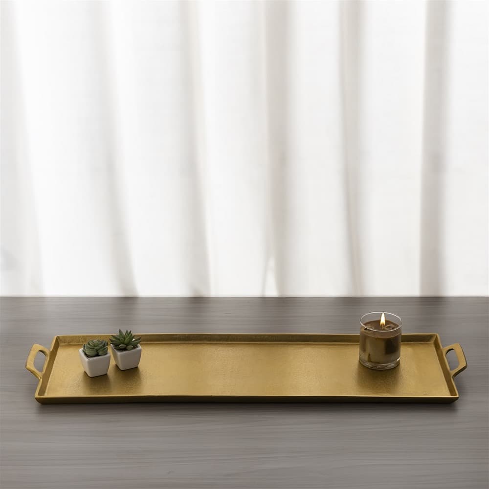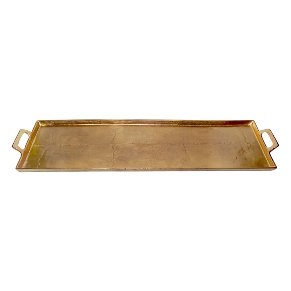 Aluminum Tray with Handles 10×34″ in Antique Brass by BIDKhome