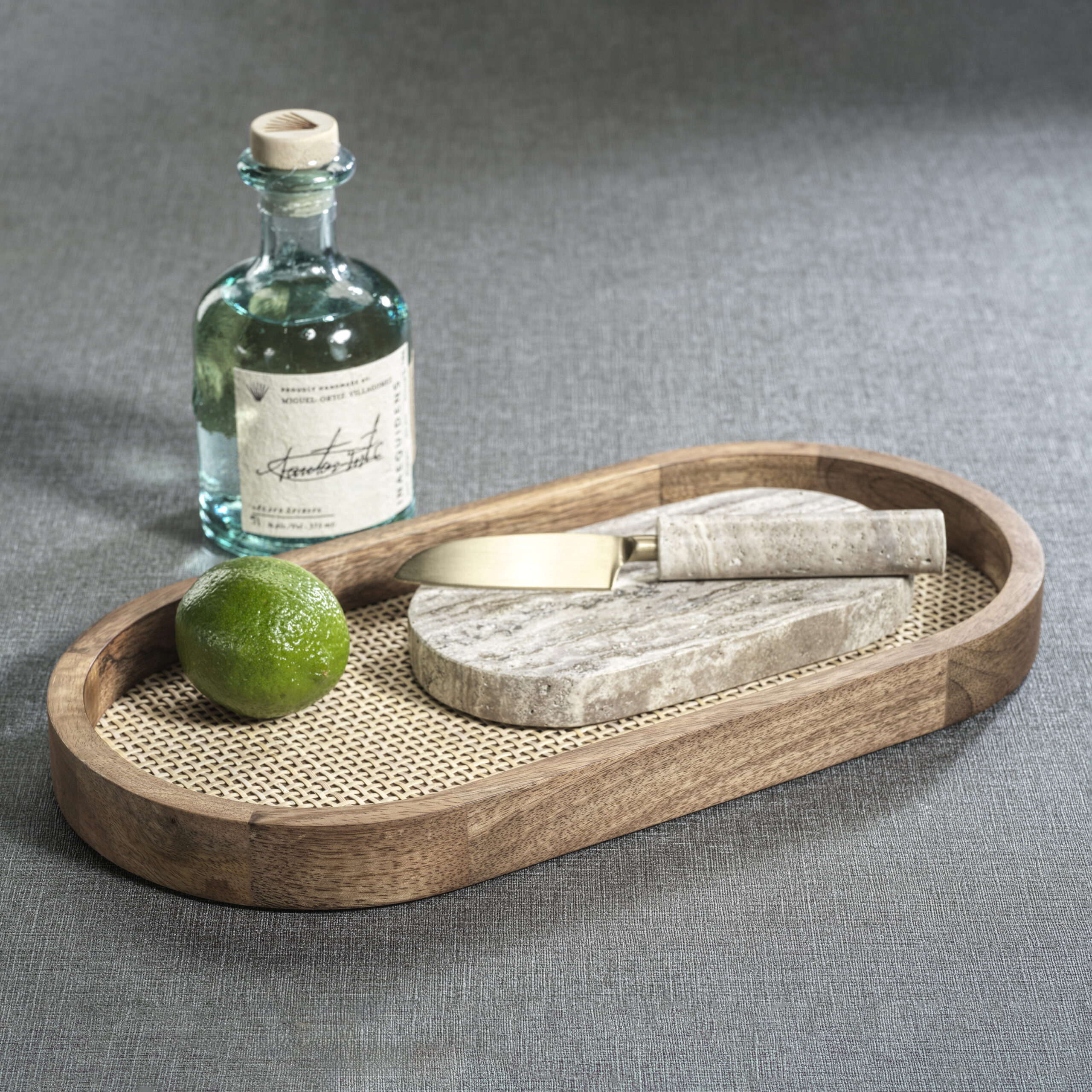 Banyan Mango Wood w/ Rattan Inlay Oval Tray, Medium by Zodax