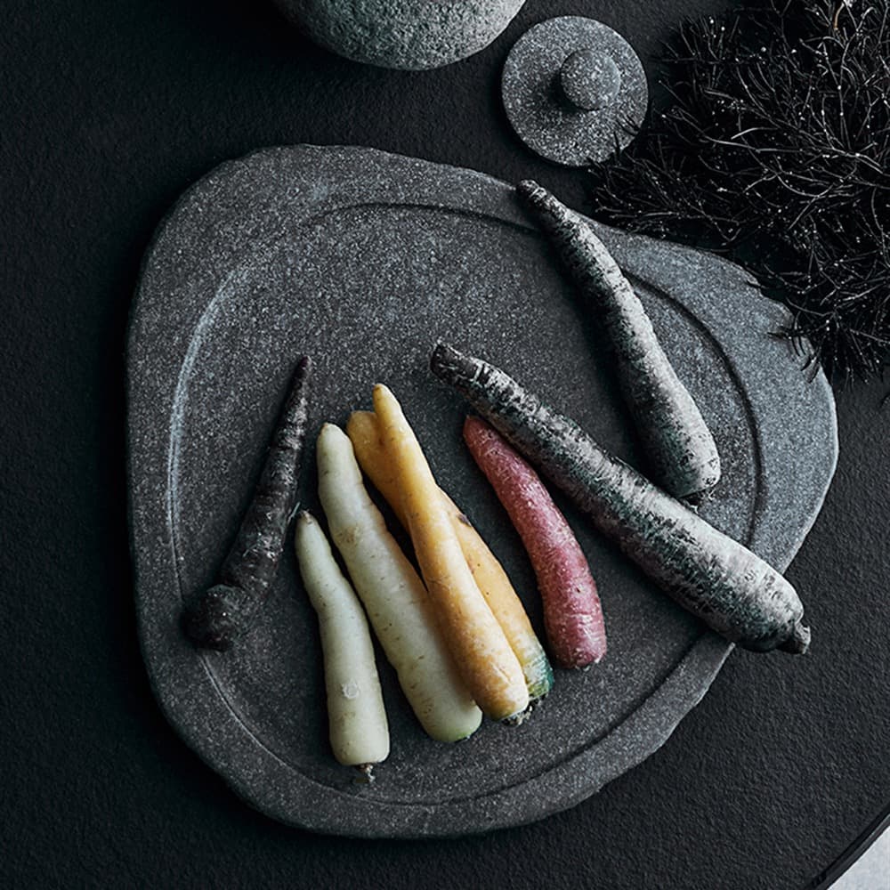 Tray made of riverstone from Muubs. The Valley dish is a unique product, as it is handmade from a natural material, and the dishes vary accordingly in size, shape and color. The riverstone dish has a polished surface, but stands raw and untouched at the edge. The stone dish has many applications as it can be used as a steak plate, for serving tapas or as a decorative tray with salt and oil or candles and decorative items. Muubs is an established Danish Brand new to the American Market. The design philosophy aims to find beauty in imperfection, and to imbue storage solutions, tableware, and home accessories with the beauty of nature. Natural Scandinavian design.