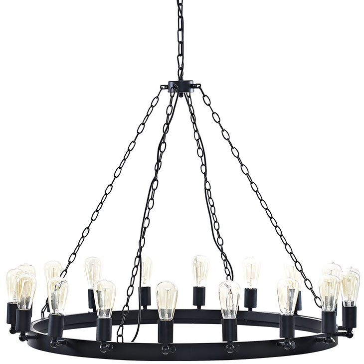 Transform your room into a launch pad of experience. The Teleport Chandelier Series is supported by four adjustable steel chains, adorned with a magnificent array of eighteen bulbs, and was designed to “touch down for landing” when desired with 180-degree up-down adjustable bulb holders. Transport your décor while dining amongst friends in this series perfect for industrial, ranch, vintage modern, contemporary, and other transitional décors.