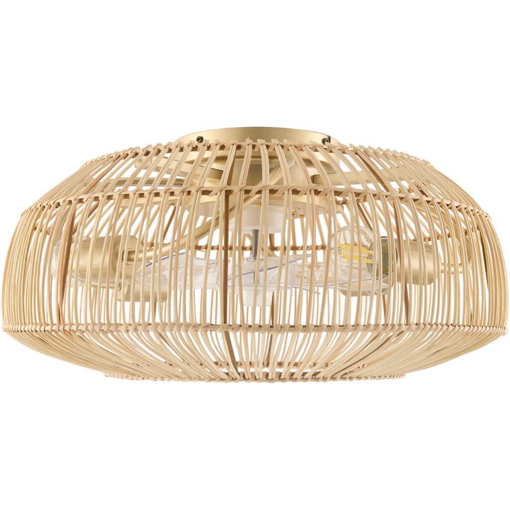 Materials: Fixture: Iron; Shade (Outside): Rattan; Shade (Inside): Rattan