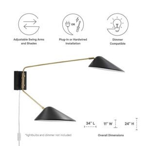 Journey 2-Light Swing Arm Wall Sconce by Modway in Black by Modway