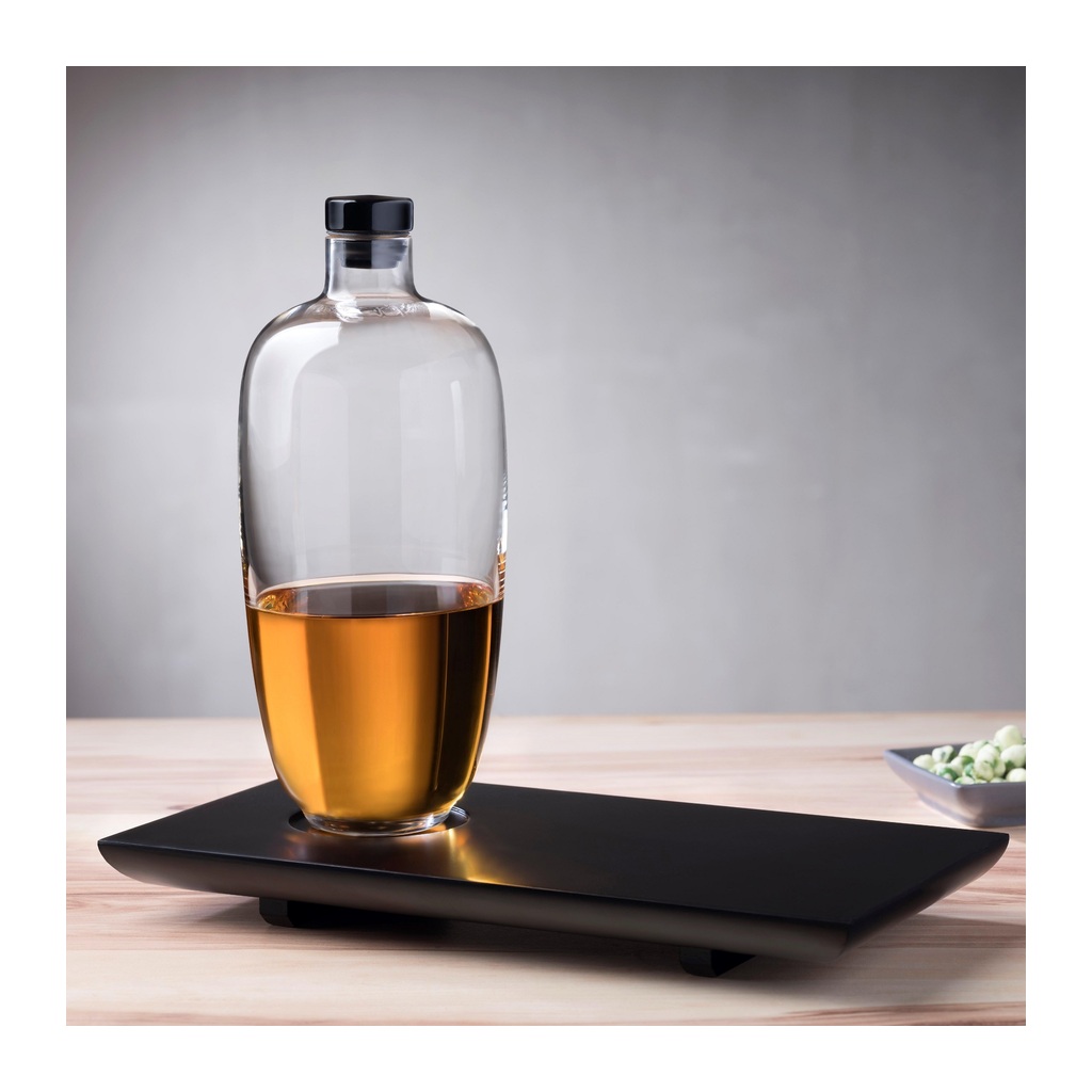 Malt Tall Whisky Bottle with Wooden Tray by Nude Glass