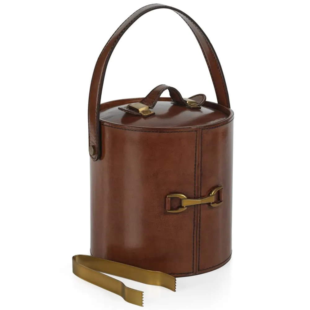 Chadwell Leather Ice Bucket with Gold Metal Ice Tong by Zodax