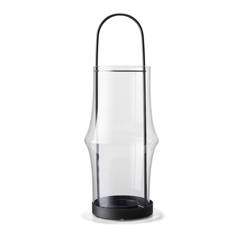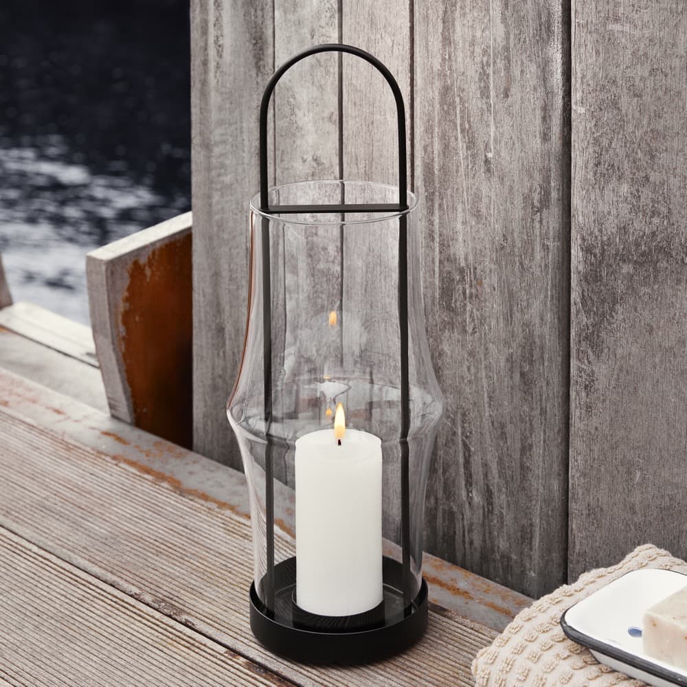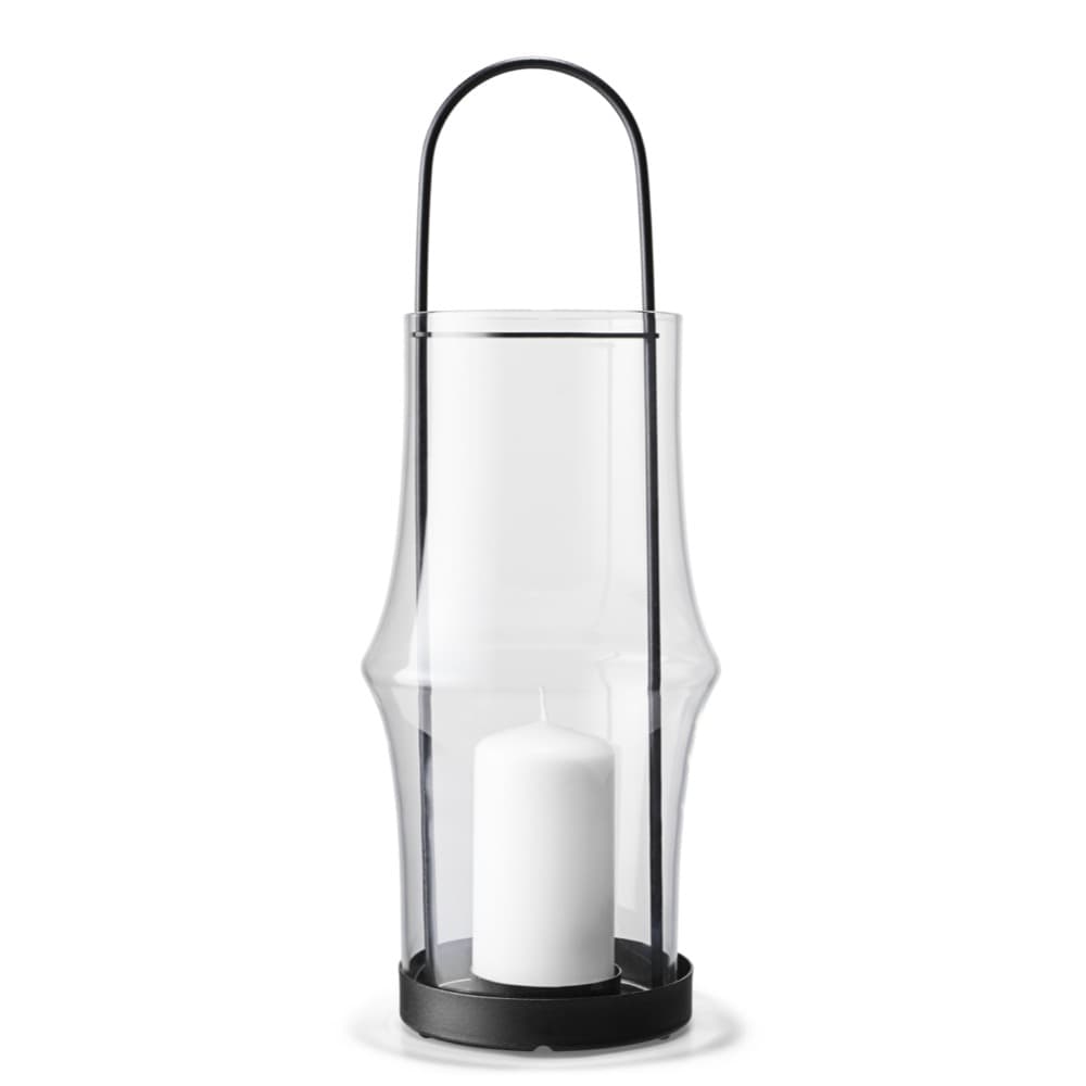 The elegant ARC lanterns from Holmegaard create a cosy atmosphere both indoors and outdoors with their unique design that reflects the light beautifully. The 15.4″ lantern is made from mouth-blown borosilicate glass and is designed to hold bigger pillar candles measuring a maximum of 6.3″ cm in height and 2.3″ in diameter. A metal plate at the bottom of the lantern keeps the candle stable and secure. And the metal plate at the top protects the handle from the heat of the flame while stabilising the glass as you carry the lantern. For example, place one or more lanterns on the table, on the window sill, by the stairs, on the floor or on the terrace. They can be used both indoors and outdoors, depending on the look you want to create.