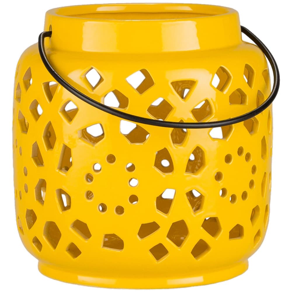 The Avery Moroccan Global Lantern is an exquisitely designed decorative accent piece that will add a touch of exotic flair to your space. Crafted from ceramic, this lantern features intricate designs inspired by traditional Moroccan patterns, offering a unique and captivating aesthetic. Whether placed in your garden, patio, or living room, it promises to enhance the ambience with its enchanting glow. Not only is this lantern outdoor safe, but it also requires minimal maintenance – simply wipe clean with a damp cloth and mild soap when needed. Avoid harsh cleaners to maintain its stunning finish. Illuminate your surroundings with the Avery Moroccan Global Lantern for an inviting atmosphere imbued with global charm.