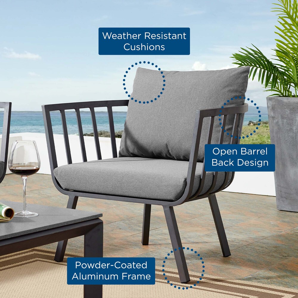 Riverside Outdoor Patio Aluminum Armchair in Gray Charcoal by Modway