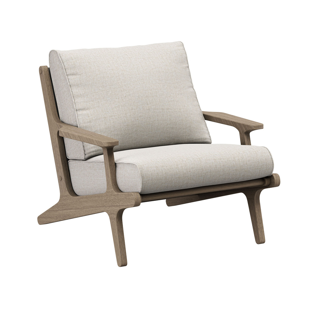 Refresh your outdoor space with the Saratoga Patio Lounge Chair. Expertly crafted from durable teak wood with a water-based finish that highlights its natural grain, this oversized outdoor chair features an angular frame with sculpted armrests and a slatted seat foundation for lasting support. Designed for comfort and durability, the plush seat and back cushions on this outdoor accent chair are covered in weather-resistant, water-resistant, and stain-resistant fabric, allowing for easy maintenance and year-round relaxation. Perfect for patios, balconies, decks, or poolside lounges, the Saratoga Teak Outdoor Chair blends modern design with timeless craftsmanship. Assembly required. Weight Capacity: 500 lbs.