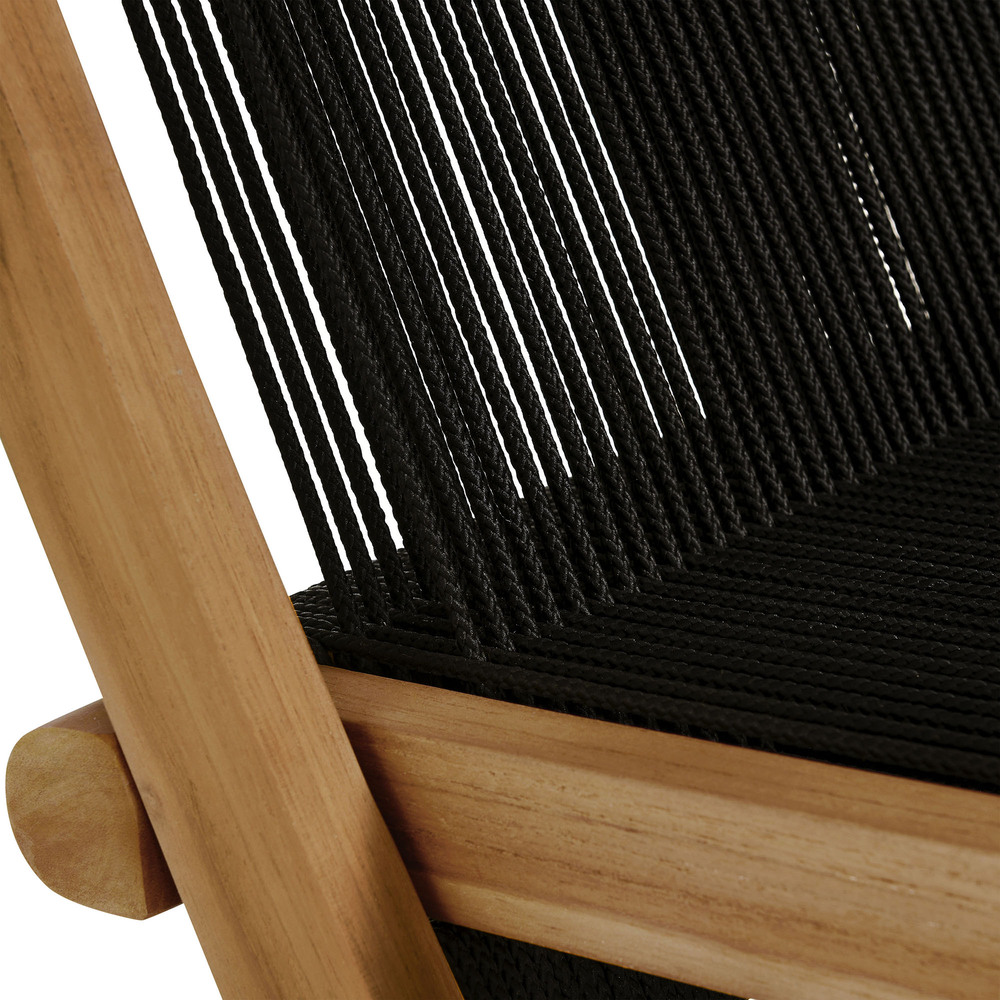 Refresh your outdoor dining experience with the Vienna Outdoor Folding Dining Chair Set, an al fresco addition that invites relaxation and conversation. These 4 outdoor chairs feature a beautiful teak wood frame, naturally resistant to weather, paired with seats intricately woven with high-quality nylon rope, creating a contemporary and cohesive look ideal for any patio or garden setting. Conveniently foldable, these teak wood dining chairs also sport an armless design, which allows them to be stored away when not in use or quickly brought out for extra guests. Add to that their slight recline in the backrest, plus their supportive stretchers, and these rope chairs provide the comfort needed for extended dinner conversations. Whether used as foldable dining chairs, balcony lounge chairs, modern bonfire chairs or paired with the complete Vienna Outdoor Teak Wood Dining Set, this set of 4 folding patio chairs complement a diverse range of outdoor patios. No Assembly Required. Weight Capacity of Each Chair: 200 lbs.