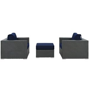 Sojourn 3 Piece Outdoor Patio Sunbrella® Sectional Set in Canvas Navy by Modway