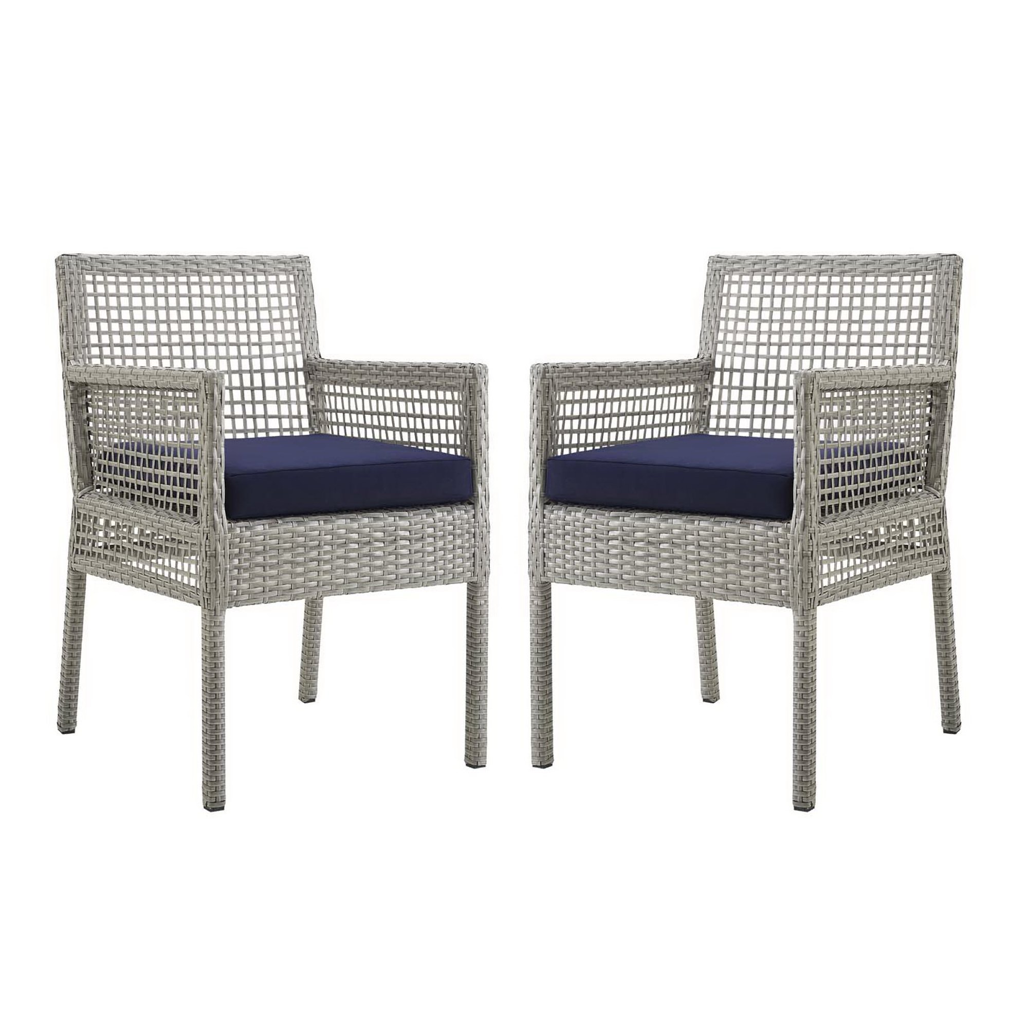 Aura Outdoor Patio Wicker Rattan Dining Armchair Set of 2 by Modway