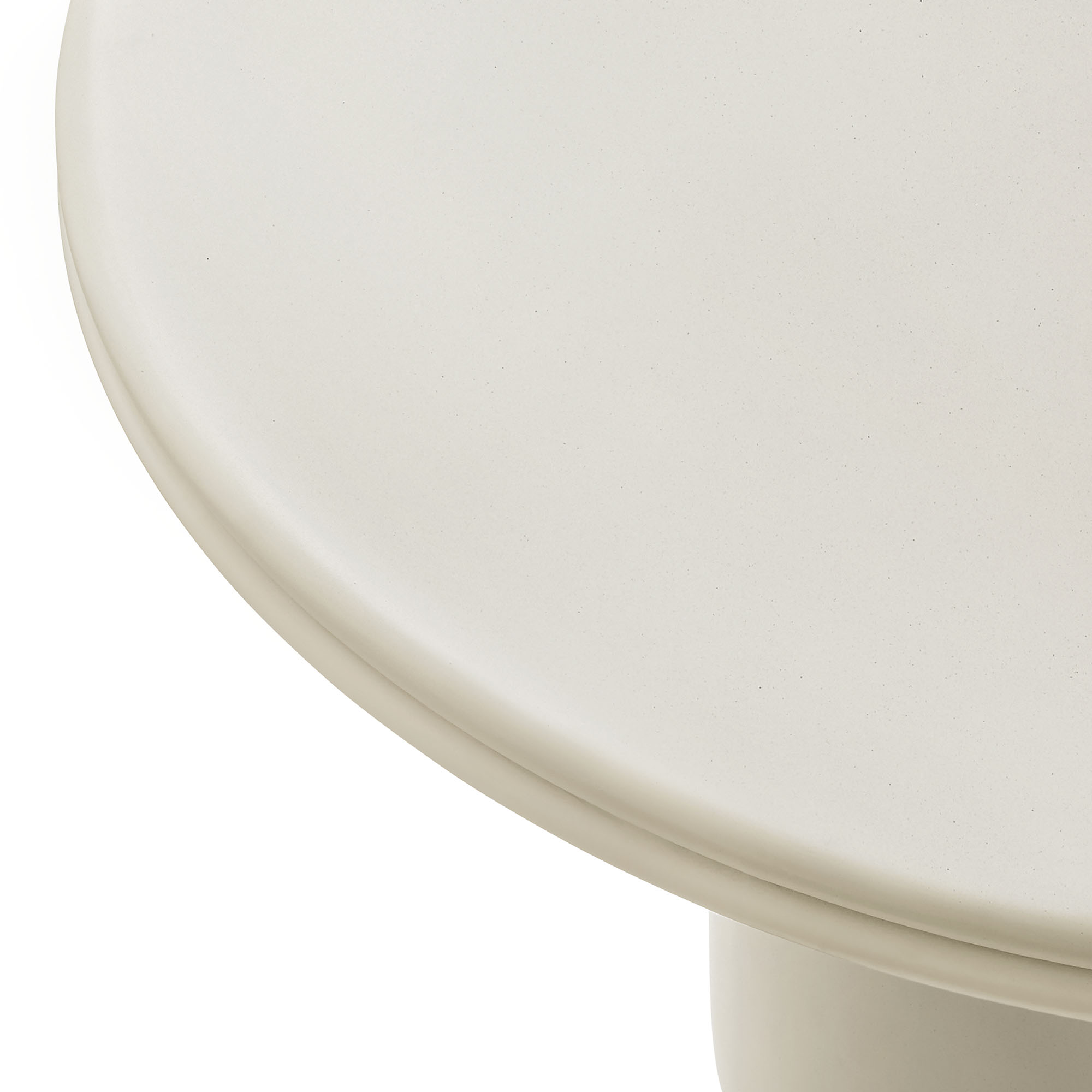 The Brion Concrete Round Dining Table makes a bold statement with its contemporary design and distinctive details. Crafted from solid concrete and finished with a sleek coating, this circular dining table provides both durability and a smooth, refined look. Featuring a striking round top with a double lip around the edge, the Brion 48-inch cement dining table complements any decor, whether used outdoors or indoors. Its cylindrical base, subtly tapered for a streamlined appearance, offers superior stability while maintaining a minimalist design. Perfect for gatherings of 2 to 4, this round dining table is equally at home in a modern dining room, cozy kitchen, or a stylish patio setting. Complete with non-marking leveling feet, it ensures stability on any surface while protecting your floors. No matter where its placed, the Brion indoor/outdoor cement dining table makes a bold statement with its durable construction and modern aesthetic. Assembly required. Weight Capacity: 230 lbs.