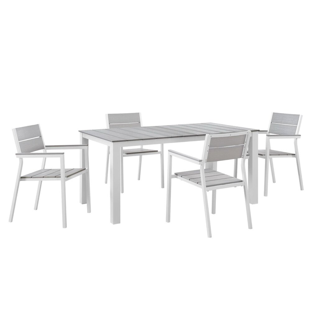 Maine 5 Piece Outdoor Patio Dining Set in White Light Gray by Modway
