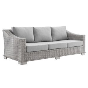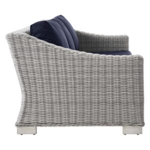 Conway Outdoor Patio Wicker Rattan Sofa in Light Gray Navy by Modway