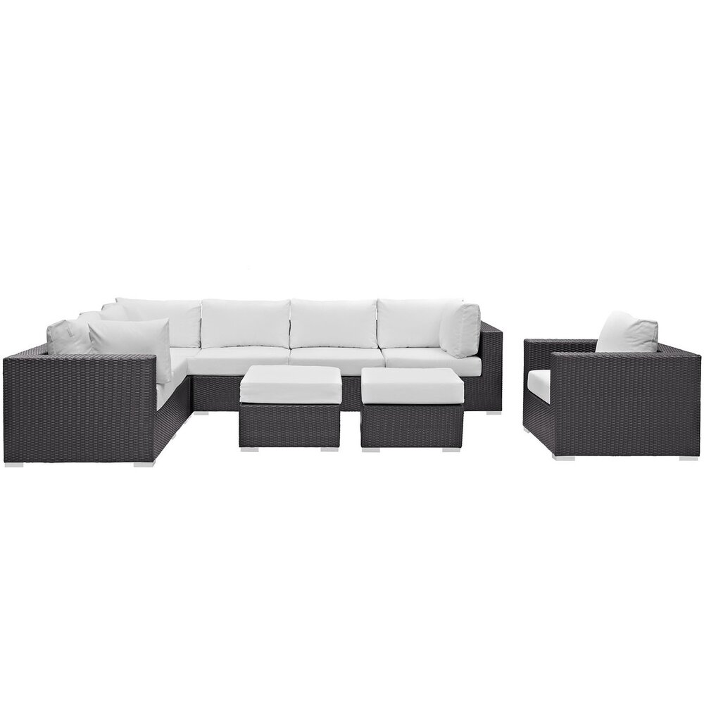 Convene 9 Piece Outdoor Patio Sectional Set in Espresso White by Modway