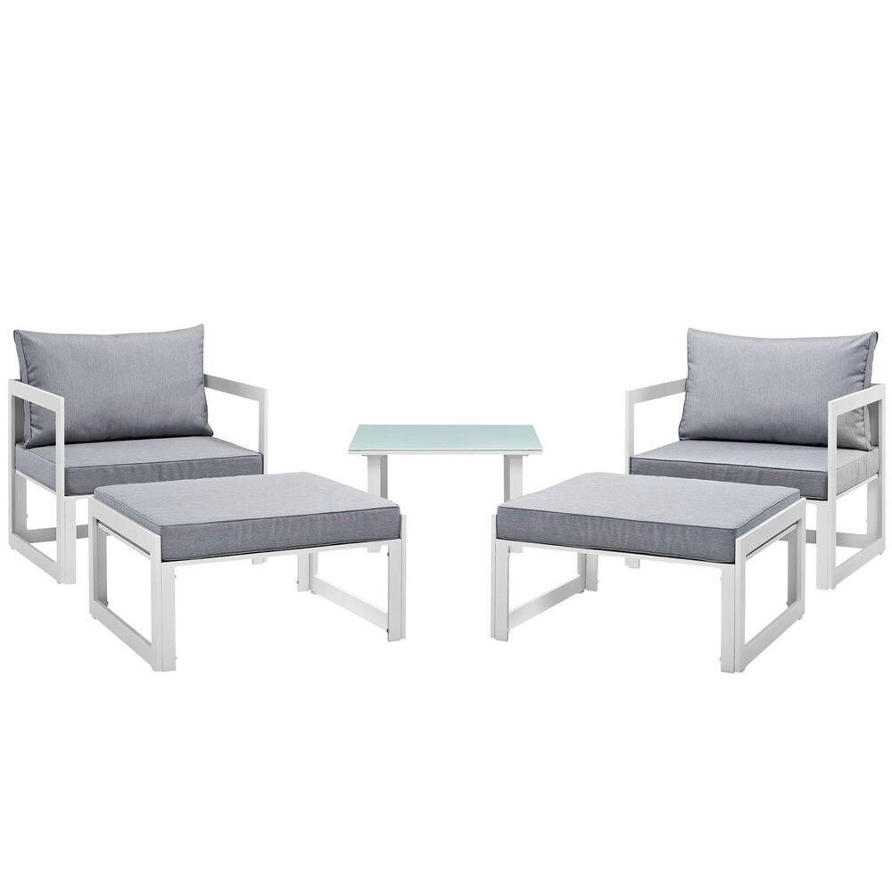 Fortuna 5 Piece Outdoor Patio Sectional Sofa Set in White Gray by Modway