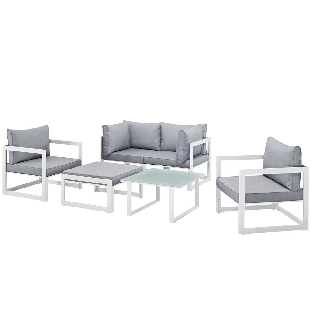 Fortuna 6 Piece Outdoor Patio Sectional Sofa Set in White Gray by Modway