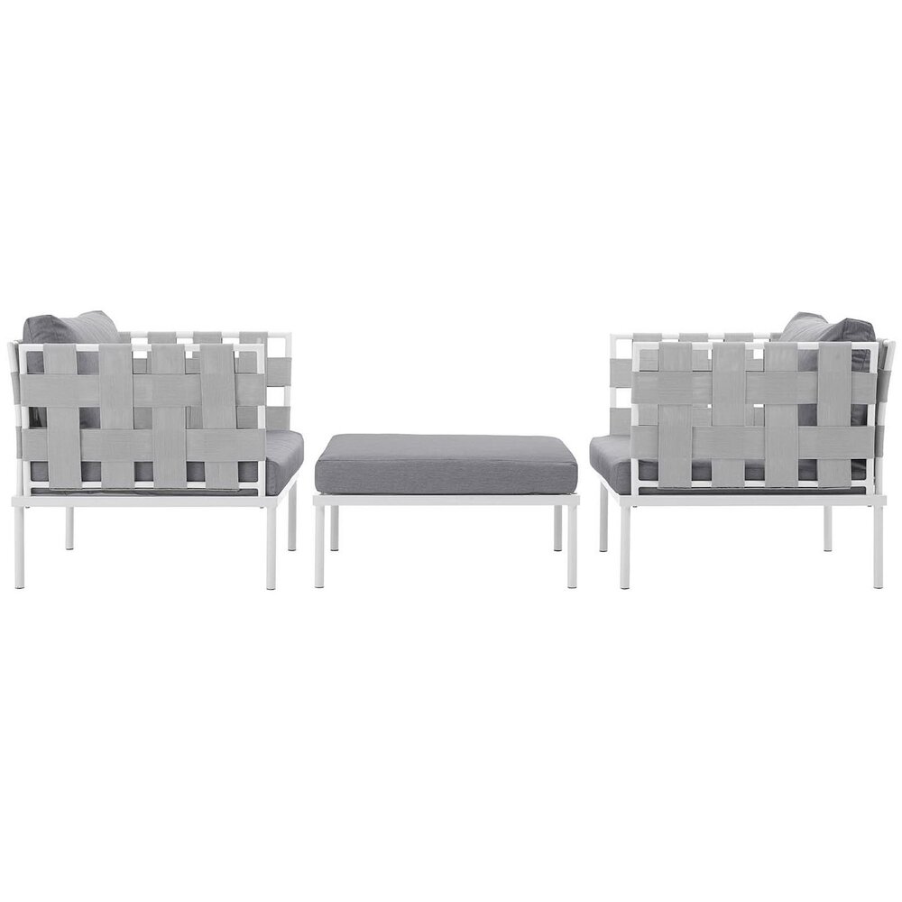 Harmony 3 Piece Outdoor Patio Aluminum Sectional Sofa Set in White Gray by Modway