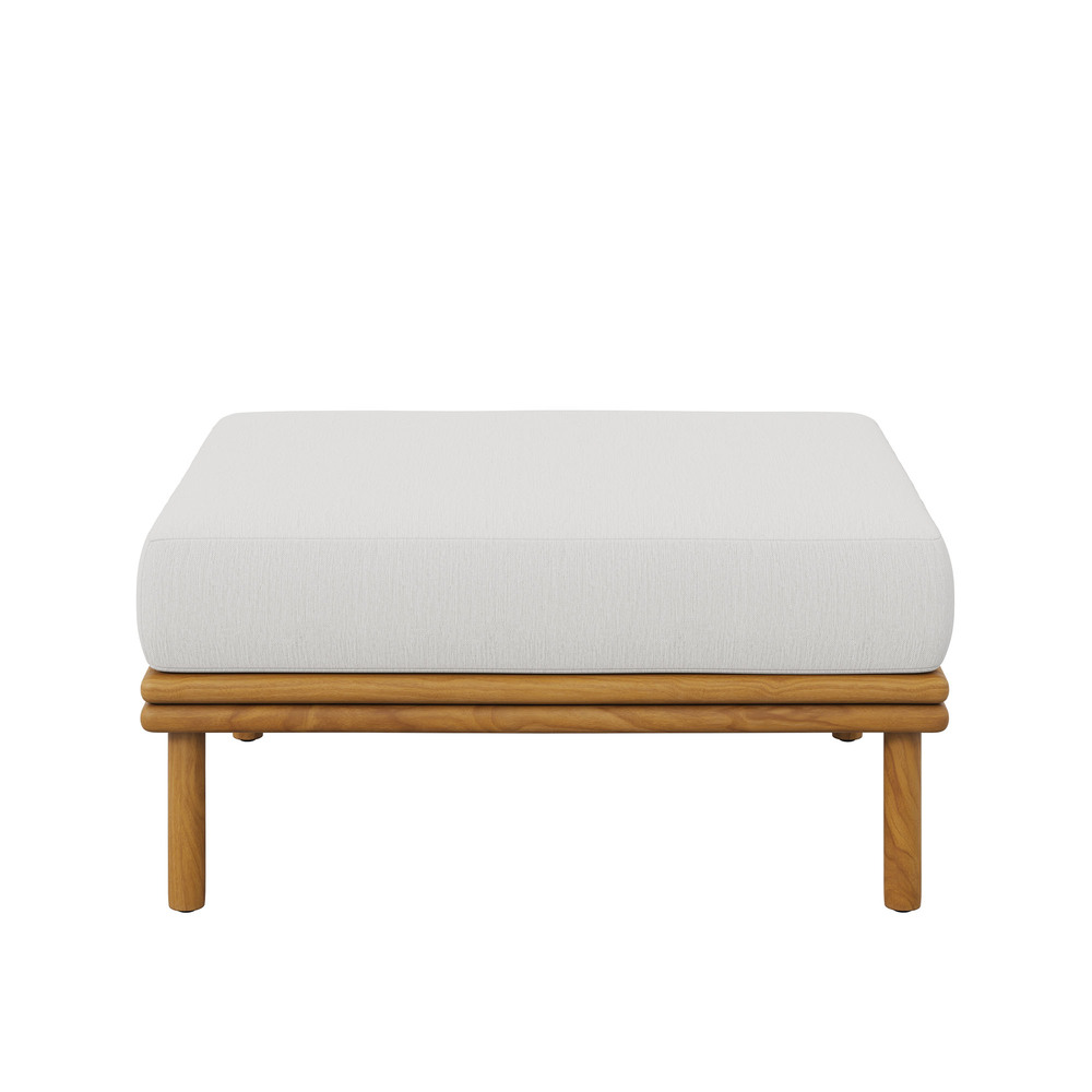 Enjoy the flexibility and charm of the Wren Teak Wood Ottoman, designed for a variety of outdoor settings. This beautifully crafted piece features a teak wood frame renowned for its all-weather qualities and timeless charm. The plush, removable cushion, wrapped in premium Sunproof fabric, offers superior comfort and excellent resistance to the elements, keeping this padded ottoman attractive season after season. With plastic floor glides to protect your surfaces and make repositioning easy, the Wren Outside Ottoman is as practical as it is stylish. Use it on its own as an outdoor footrest, a chic fabric coffee table, additional seating, or pair it with other pieces from the Wren teak patio furniture collection to instantly enhance your outdoor setup. Assembly Required. Weight Capacity: 800 lbs