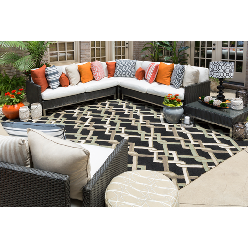 Black and Ivory Basketweave Outdoor Pillow by Livabliss