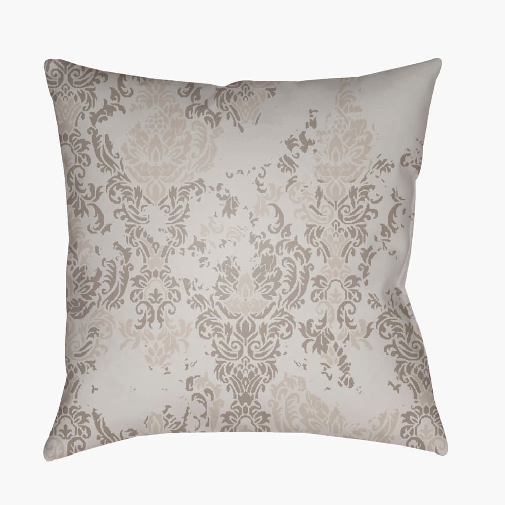 Moody Damask Light Gray Outdoor Pillow by Livabliss