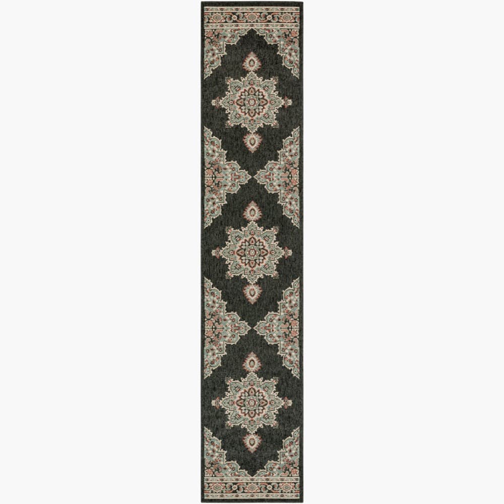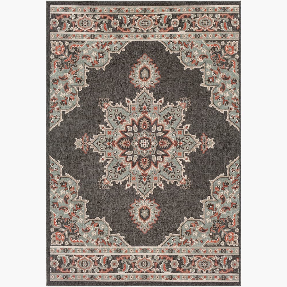 This Alfresco area rug offers a traditional style perfect for any outdoor living space. Machine woven from Olefin material, this rug is designed to withstand high traffic and is UV and weather resistant, making it suitable for outdoor use. Made in Egypt, this low-pile rug is soft to the touch and easy to clean – just vacuum or spot clean with mild soap and water. For added comfort and stability, we recommend using a rug pad (not included).